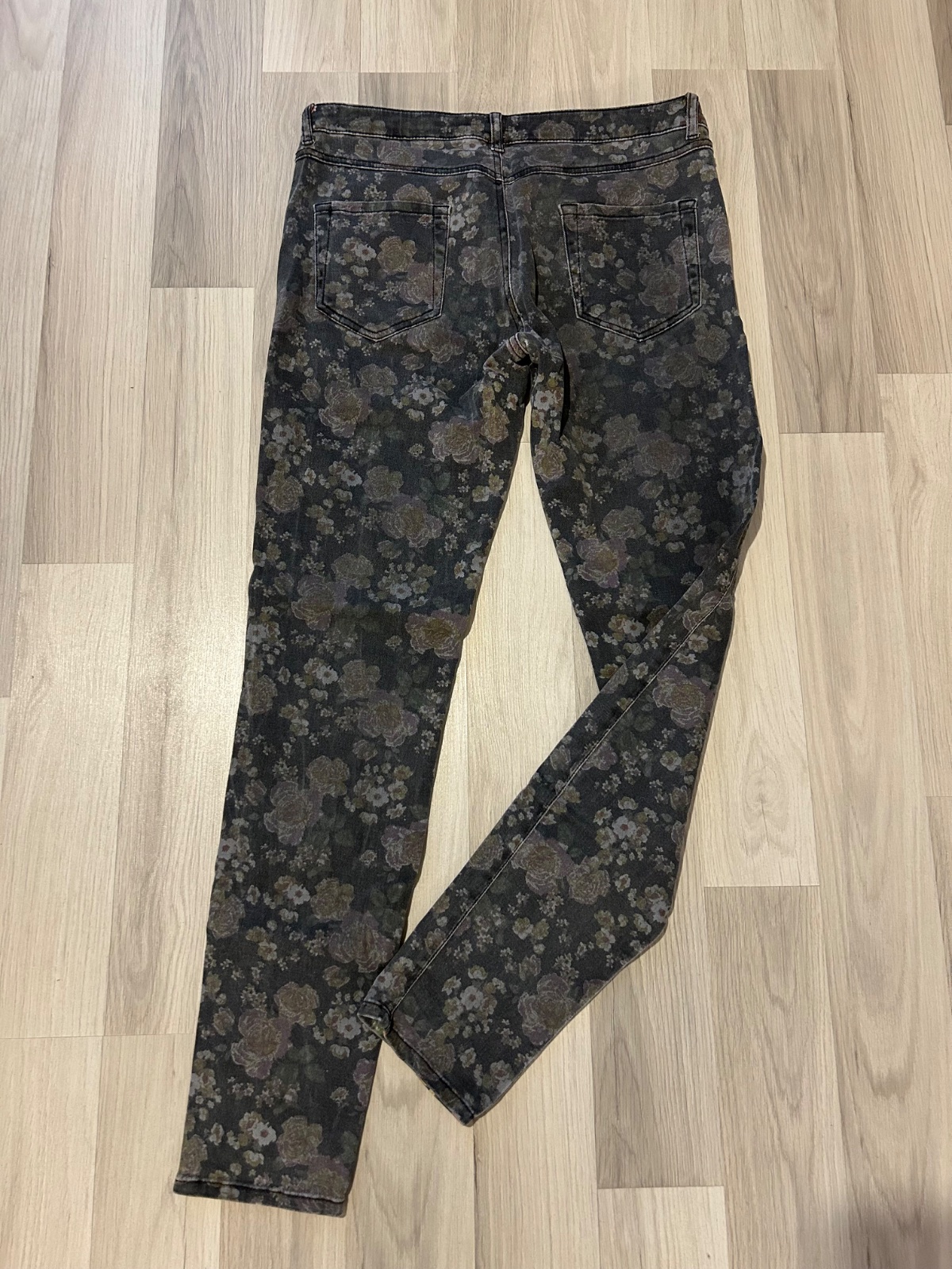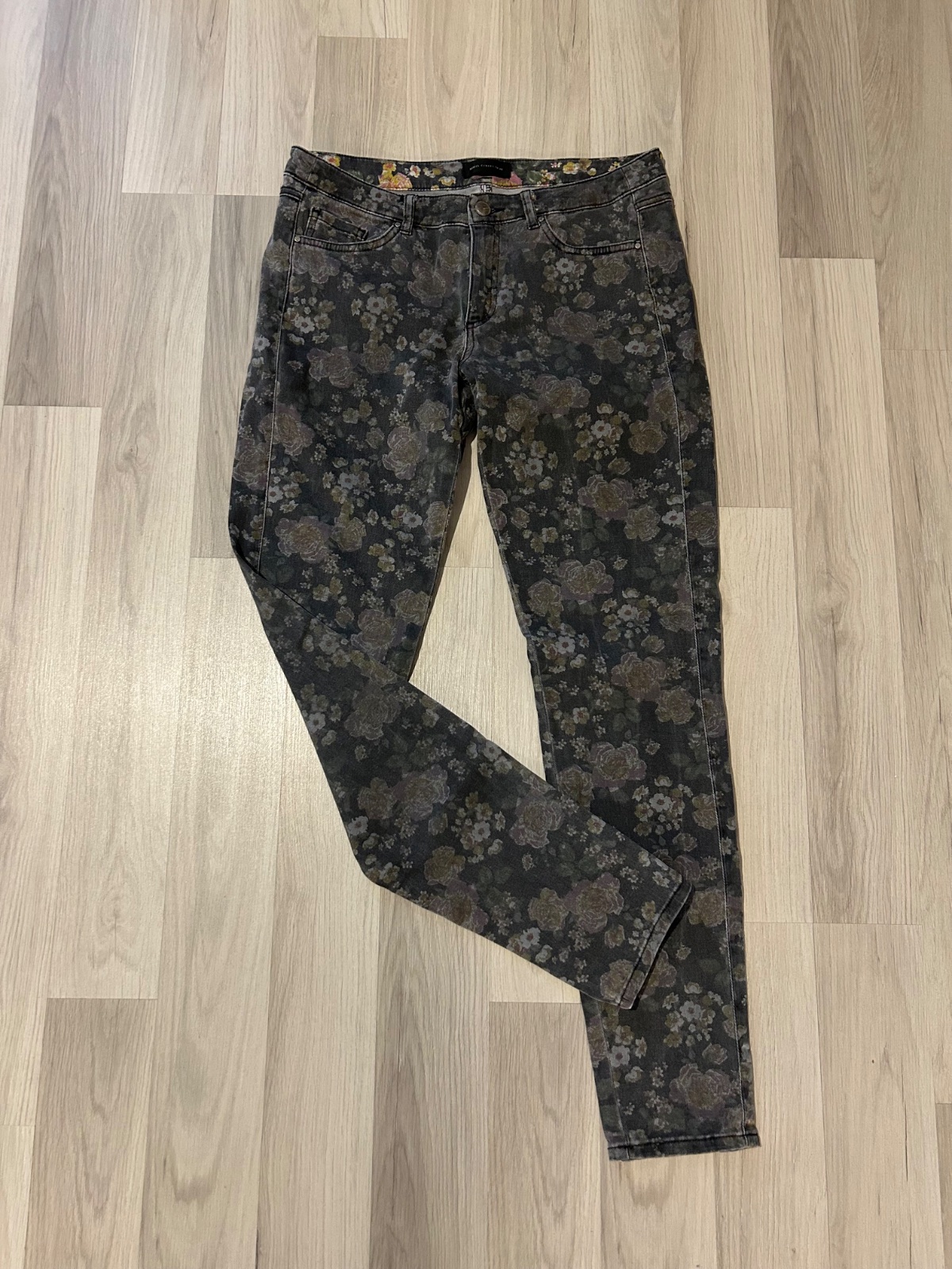 Nosené, ale bez vád, vo vnútri zošúchaný štítok ako vidno na fotke, pekne sa prispôsobia postave, značka Mango, veľkosť 38. Sivá farba s kvetinovým dizajnom. Možný aj osobný odber v BA