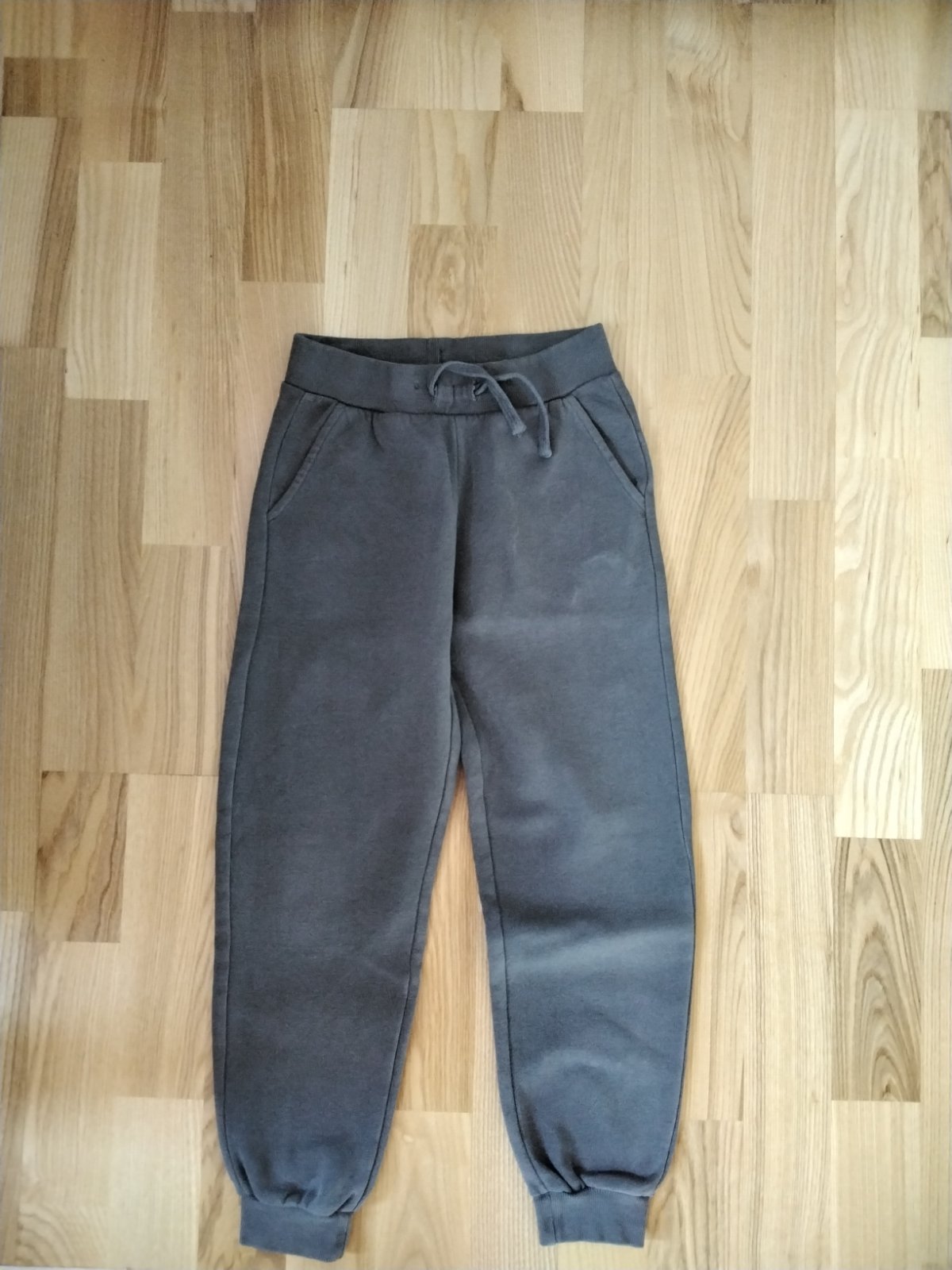 Tepláky mierne odrene koleno, podarilo sa nám padnúť v nových teplákoch, viď.foto zohľadnené v cene Inak bez poškodenia, bez známok vyprania, oblečené pár krát