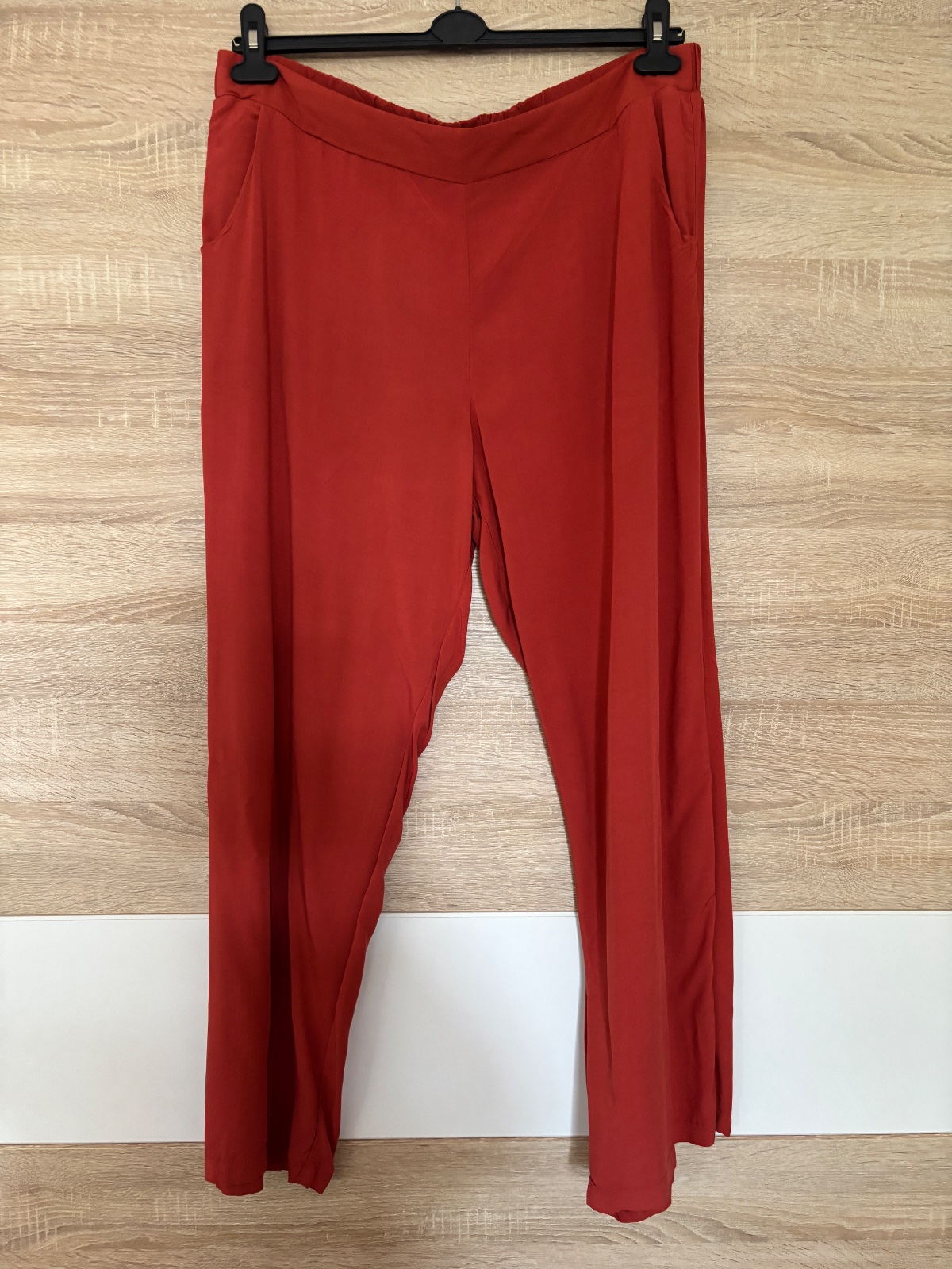 Perfektné akoby ľanové nohavice s elastanom! Zlé číslovanie, treba sa riadiť mierami. Dĺžka - 104 cm odhnuté, pás - 2x 36/55 cm, boky - 53/68 cm.