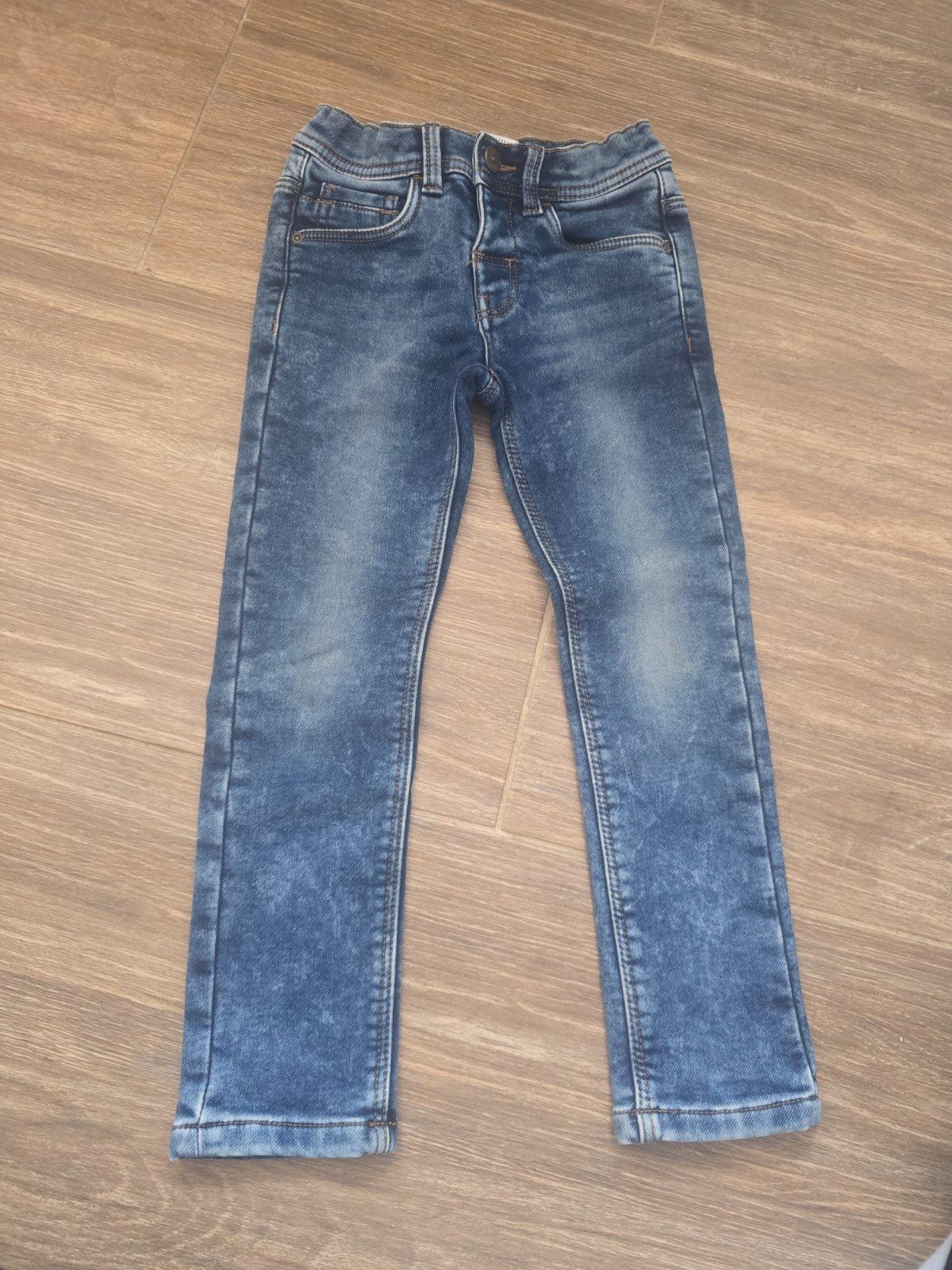 Pohodlné širšie mäkké rifle zateplené bavlnou. Nosené iba občas, vo veľmi dobrom stave. Celková dĺžka nohavíc:66cm, vnútorná dĺžka nohavice:44cm, šírka cez boky:37cm, pás sa dá nastaviť posuvnou g...