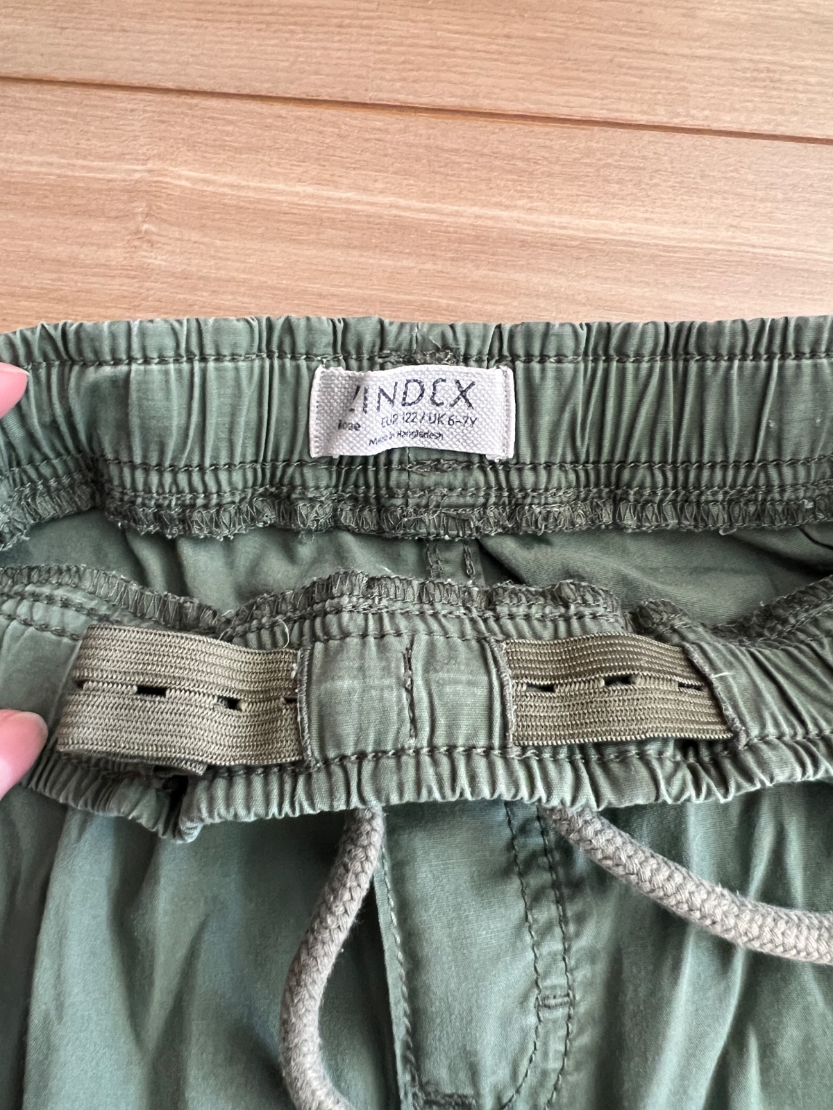 Nohavice Lindex - vzadu malinka doetka a vpredu pri vrecku zašívané - oznacené zeleným krúžkom na fotkách