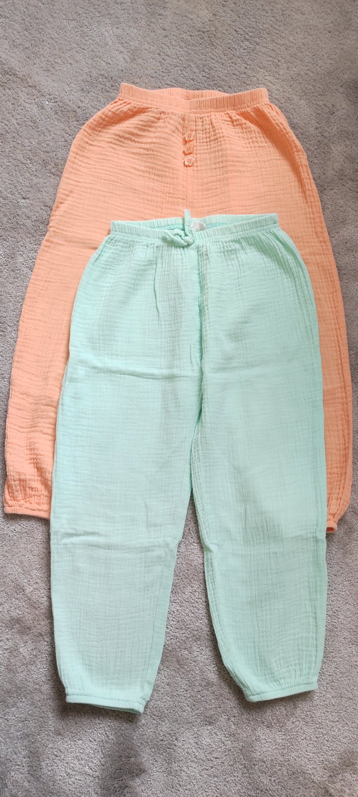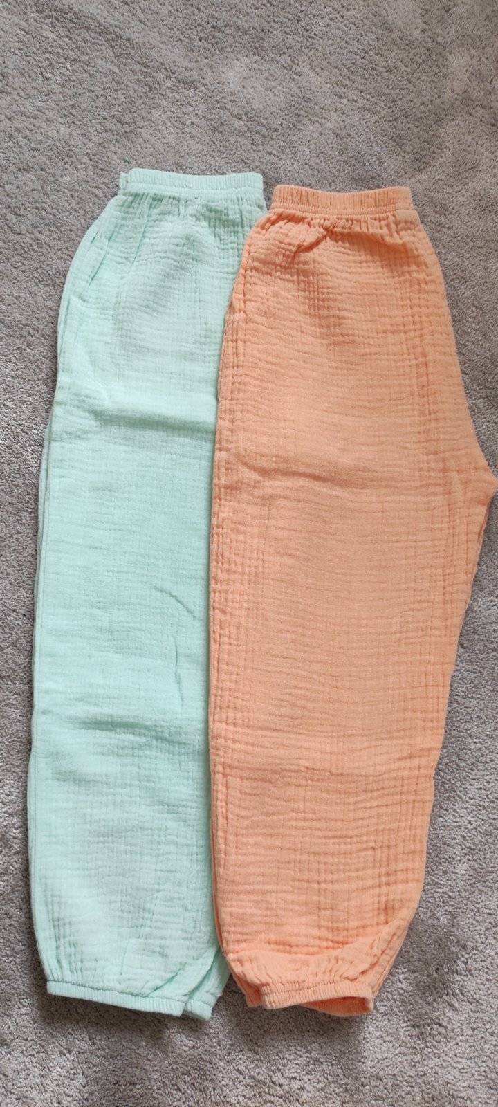 Ľahké vzdušné nohavice v zachovalom a dobrom stave 110 a 116. Rozdiel v dĺžke je 1cm. Preto sa dajú nosiť aj v dvoch veľkostiach. Boli naše obľúbené. Cena spolu.