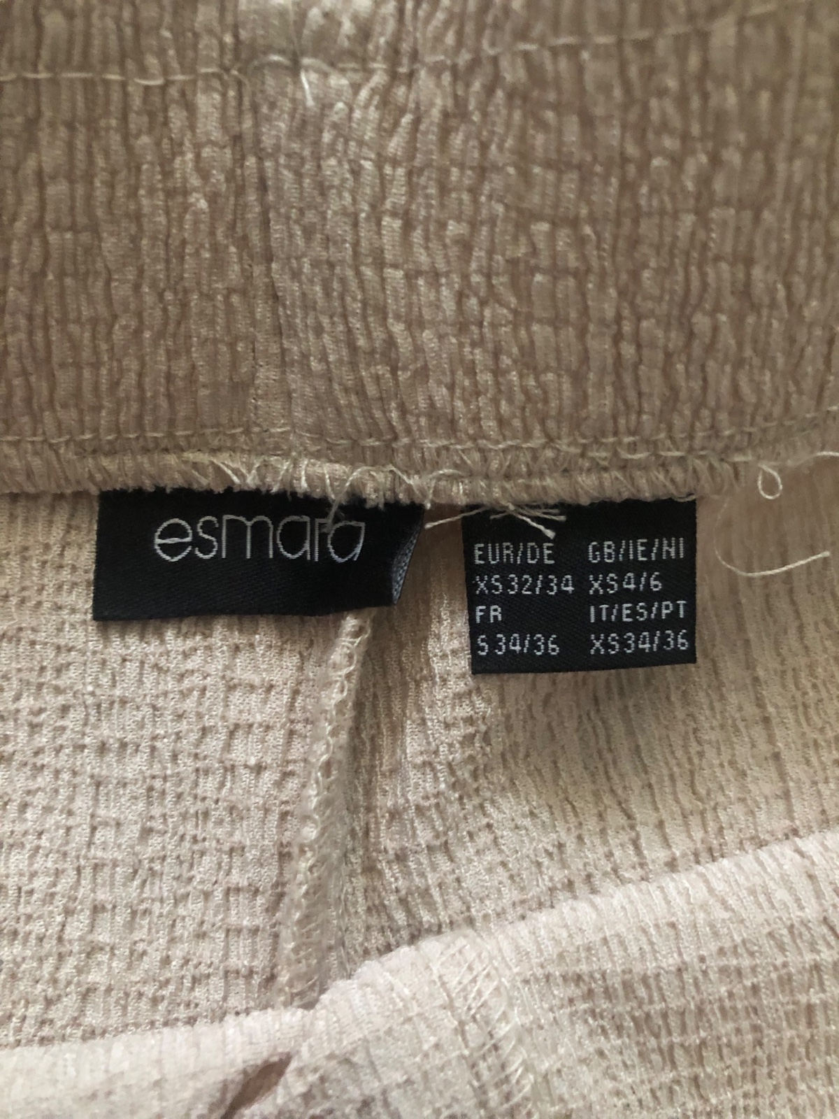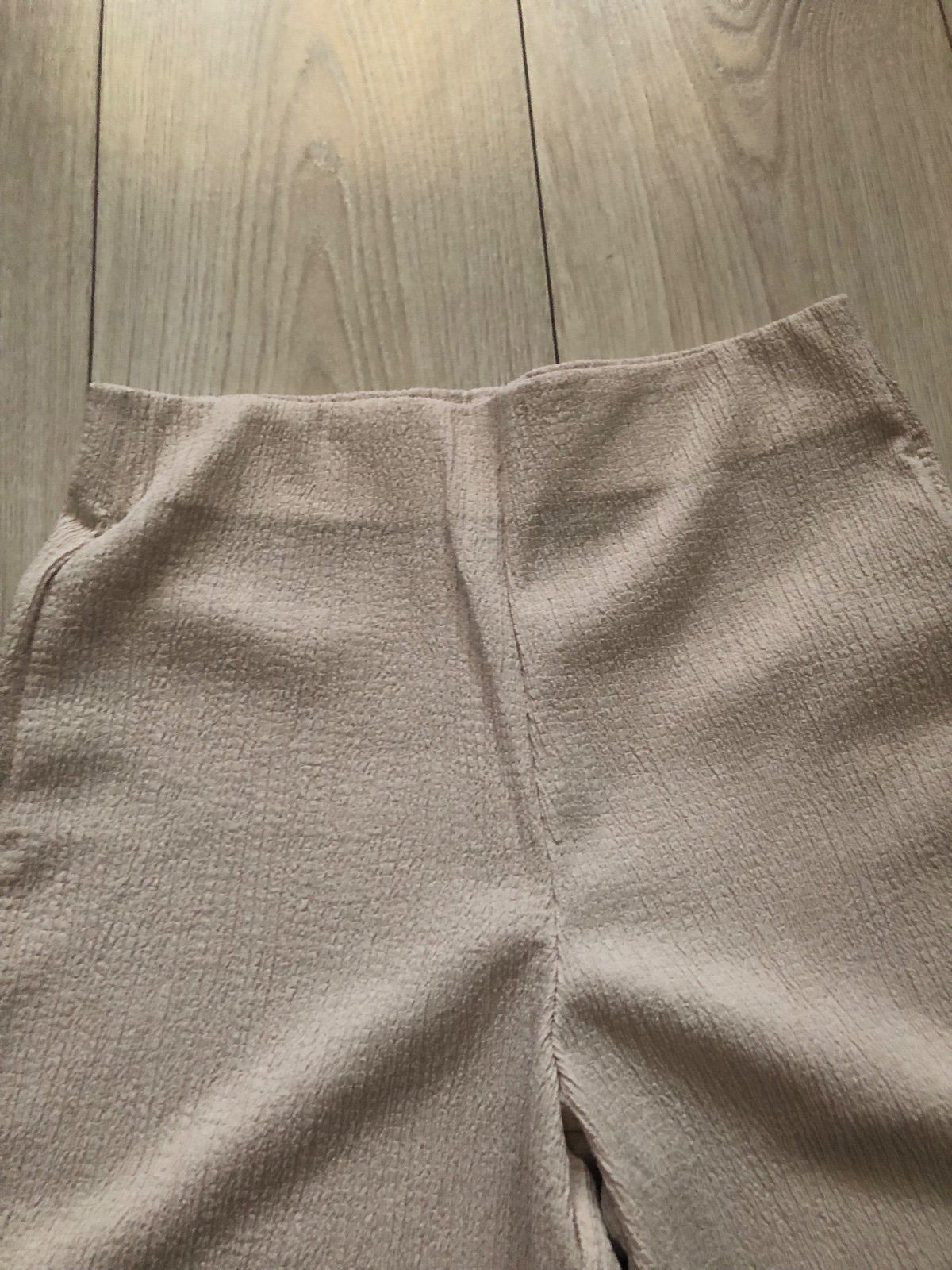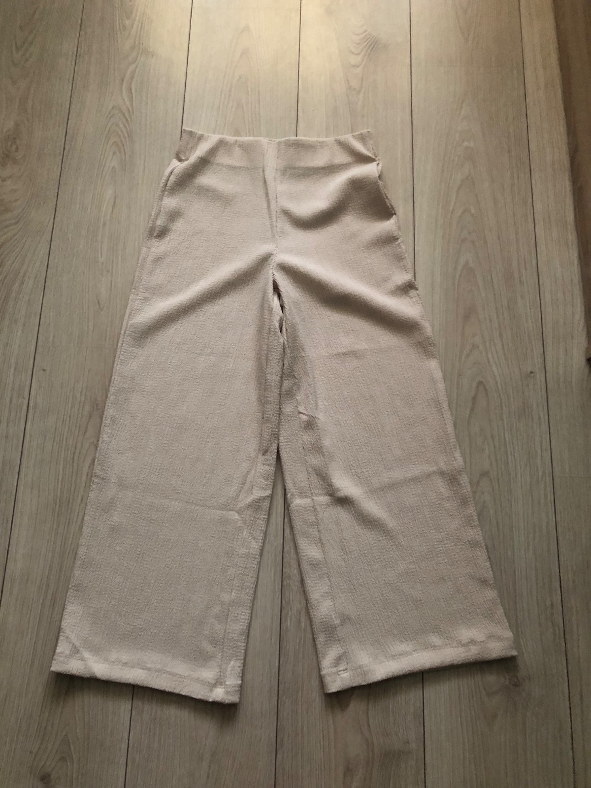 Nohavice úplne nove,bez výsačky. Majú 7/8 dlzku. Niesu úplne široké. V páse širšia guma