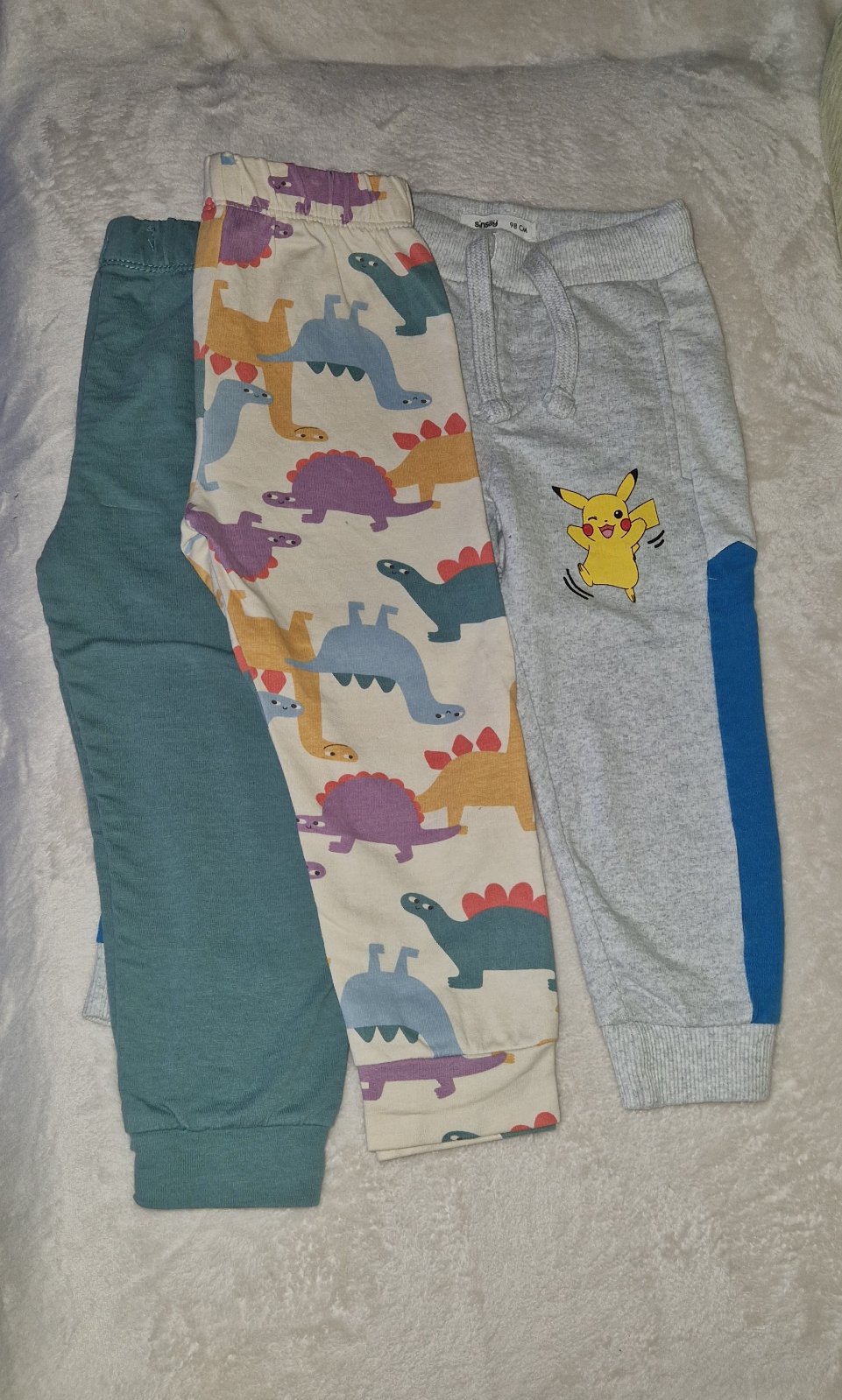 Dvojo bavlnených teplákov bez fľakov, dier a žmolkov, nevyblednuté, kolienka nevydreté, vhodné do škôlky aj na prechádzky. Cena za kus 1,90 €, spolu 3,80 €