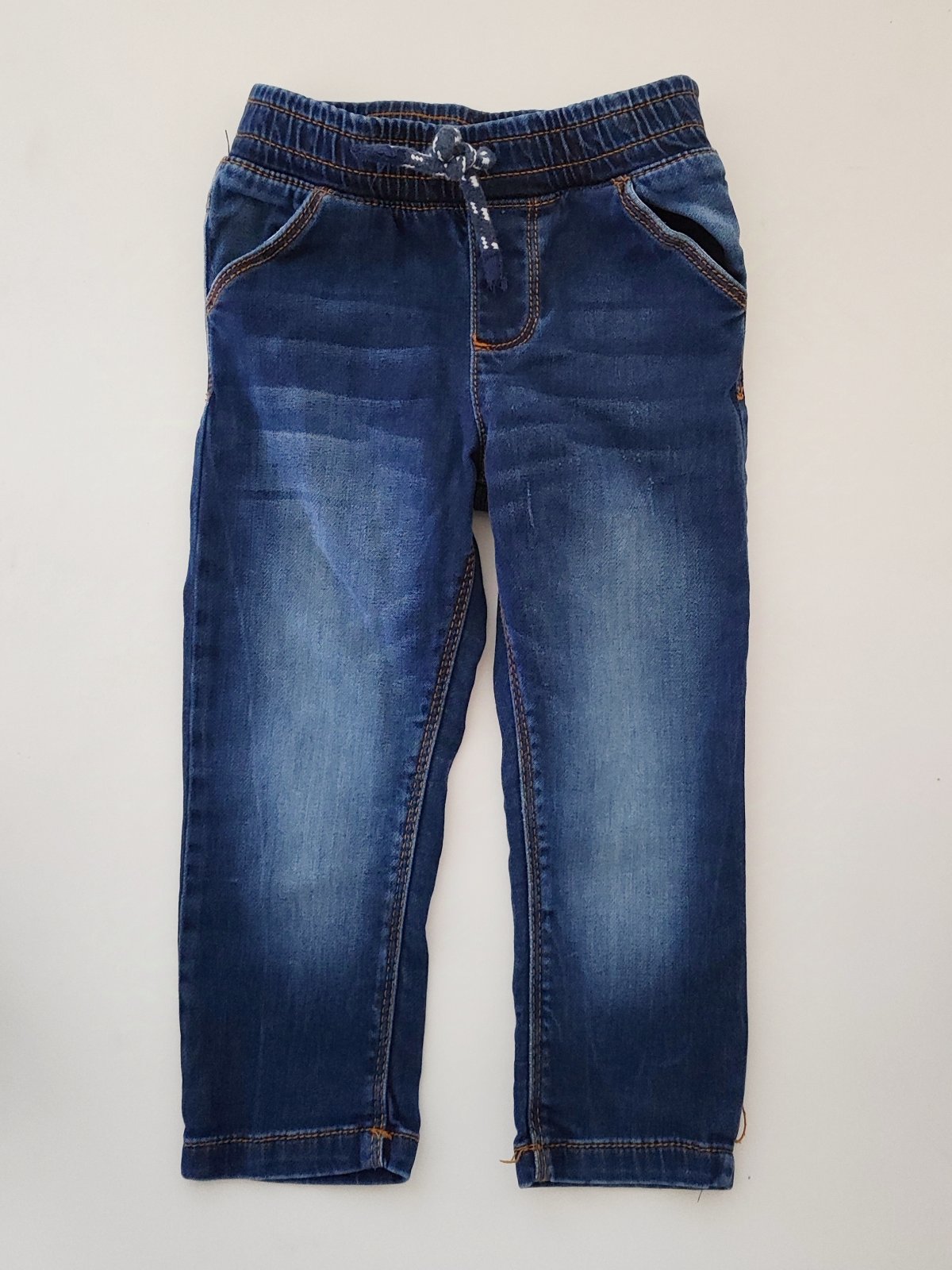 Pekné rifle, málo nosené, makký tenký materiál, užší strih, dl. 48,od rozkroku dole 25, pás 23 v pokoji - v páse guma, šírka bokov 27 cm, 2 vrecká vpredu.