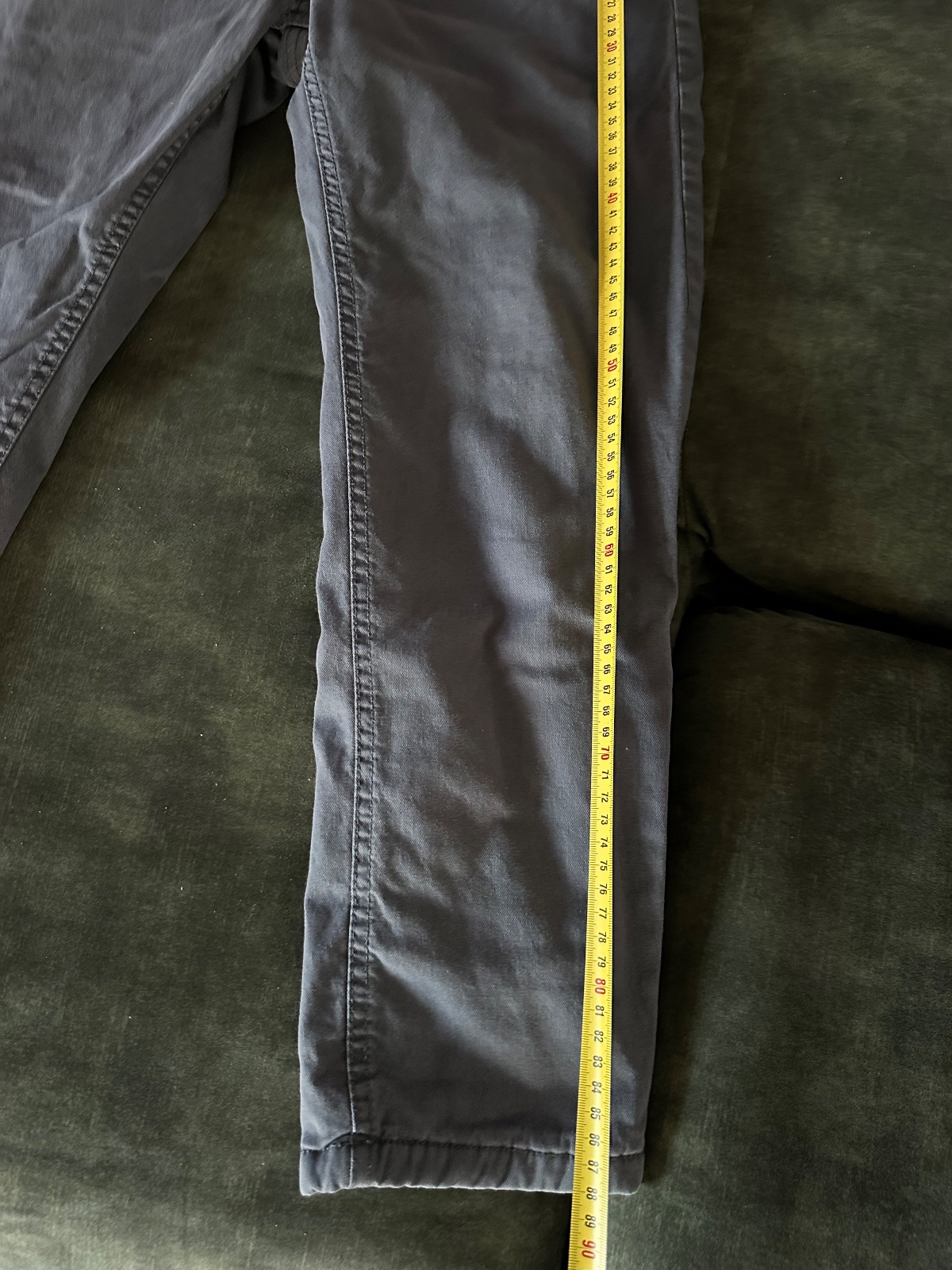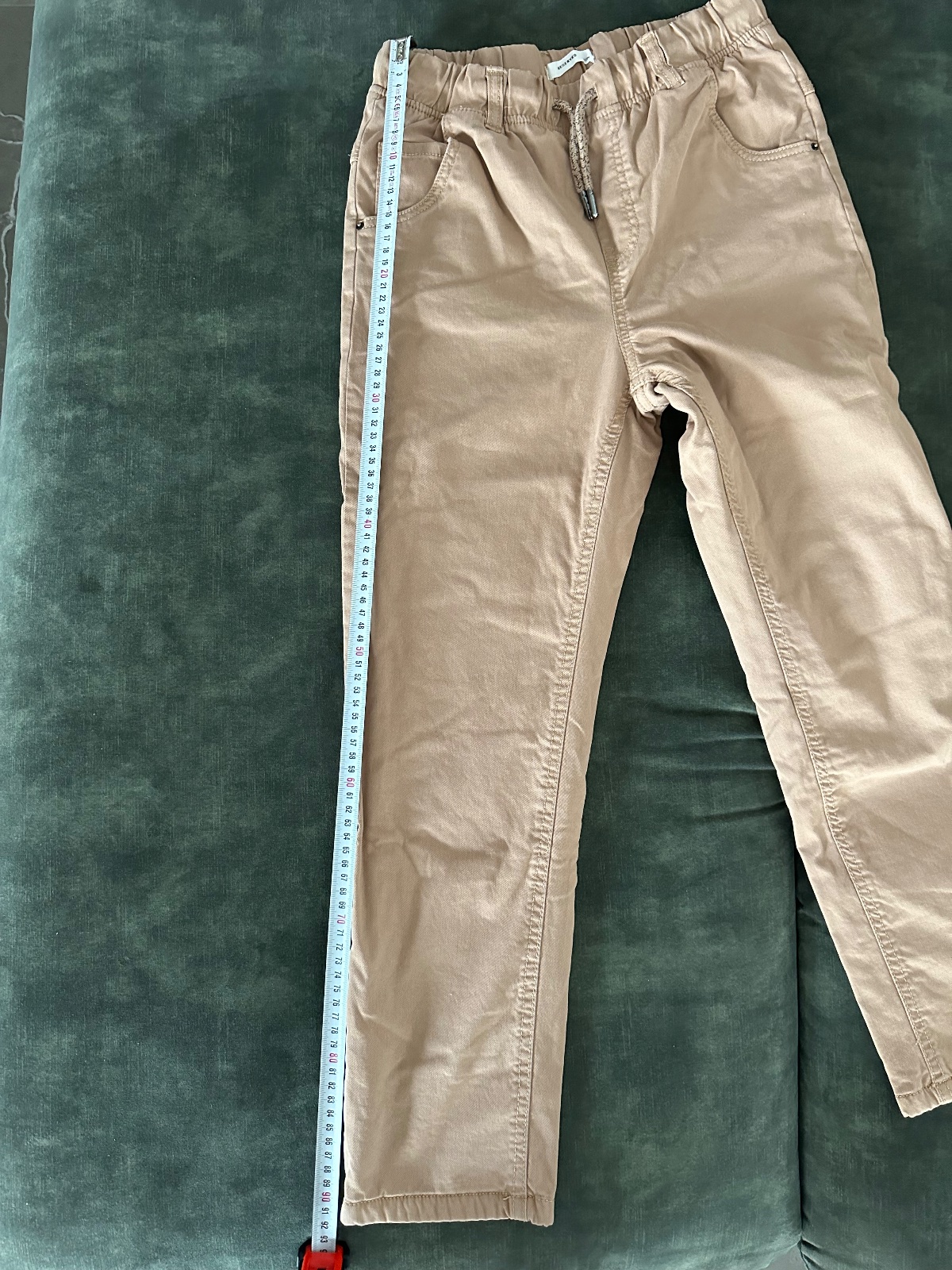 Ovelovo modra a bezova farba, nastavitelny stahovaci pas, dlhe rovne nohavice, klasicka suprava piatich vreciek. Nakolko bohuzial nevidno dobre farbu, pridala som ju aj z netu.
