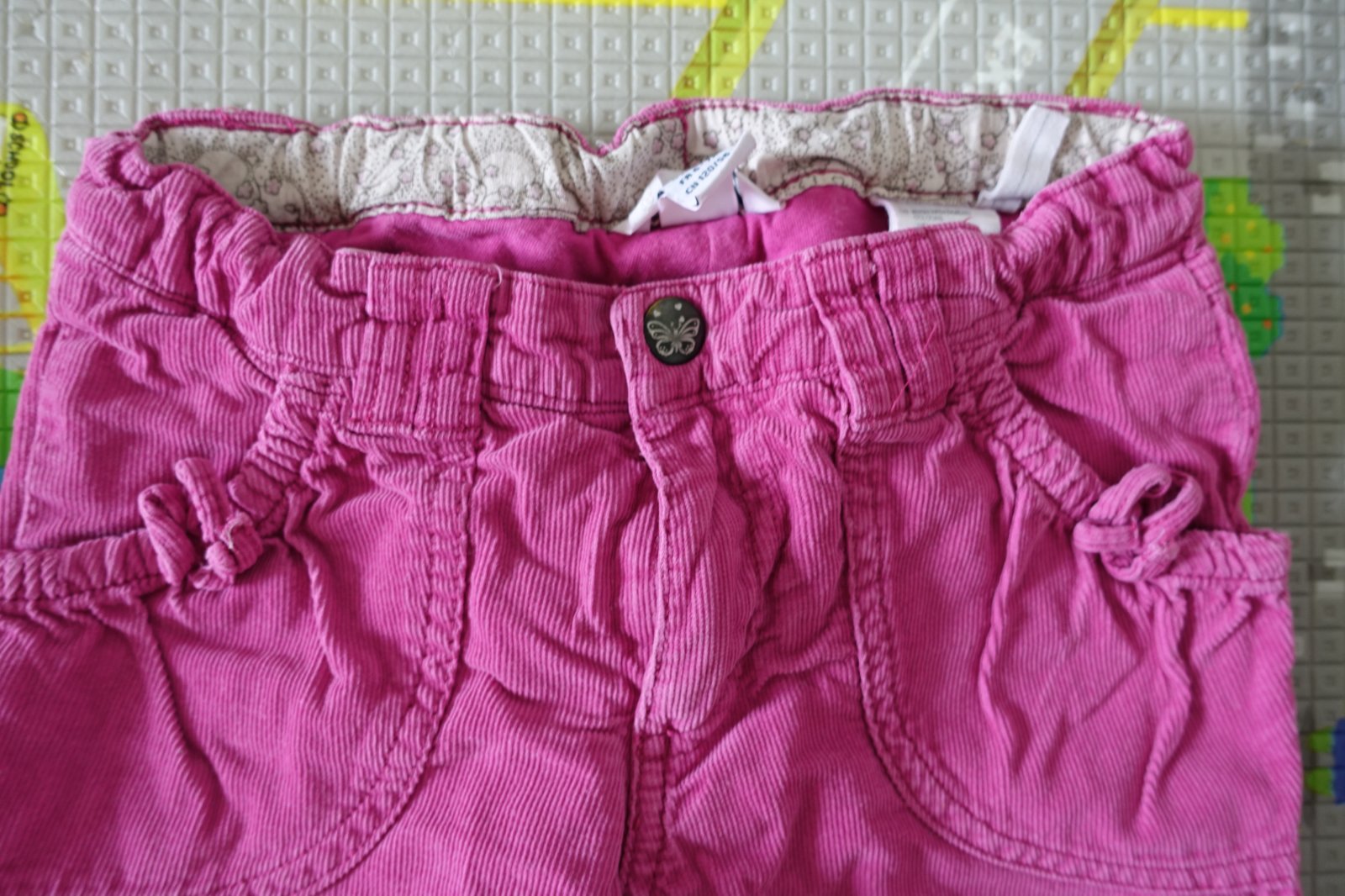 Predám 2 krásne nohavice z H&M podšité bavlnou, vhodné na prechodné obdobie. Jedny sú hnedé kárované, druhé ružové menčestrové. Obe sú mäkučké, teplučké, veľmi pohodlné. Boli nosené na striedačku aj s inými, ale nemajú výrazné poškodenia. Sú v peknom nosenom stave. Nemajú ani diery, ani fľaky. V páse majú reguláciu, dajú sa zatiahnuť. Vpredu majú dve vrecká. Celková dĺžka oboch nohavíc je 70 cm, od rozkroku 50 cm. Dĺžka pása v kľude je 29 cm, zatiahnu sa reguláciou. Cena je uvedená za obe nohavice. Predávam iba spolu. (G)