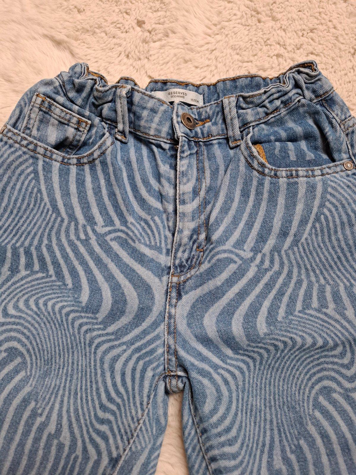 Nosené, bez poškodenia, zn. Reserved, veľkosť 152, v páse gumka na sťahovanie. Cena 6 Eur