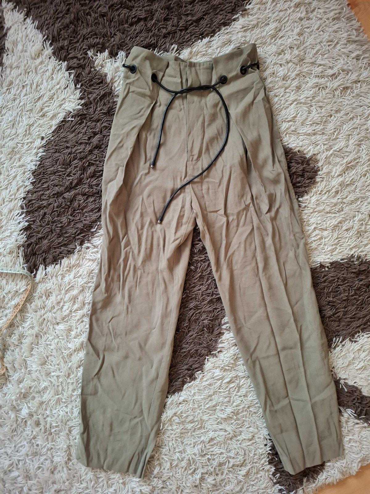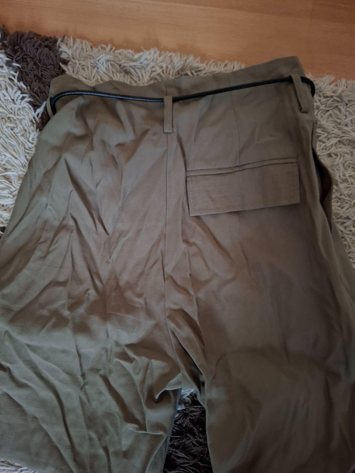 V super stave, na foto len pokrčené, dlzka 101 cm, pas vysoky 36 cm x 2, pružný. Farba krajšia olivová