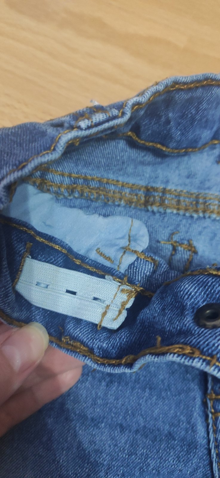 V páse sa dá stiahnuť . Na gombík a zips. Nezateplene. Klasická riflovina.