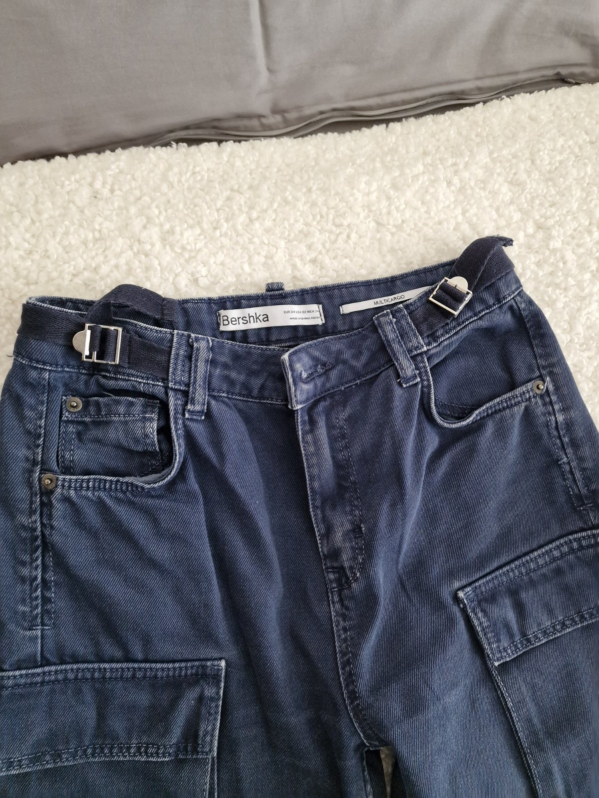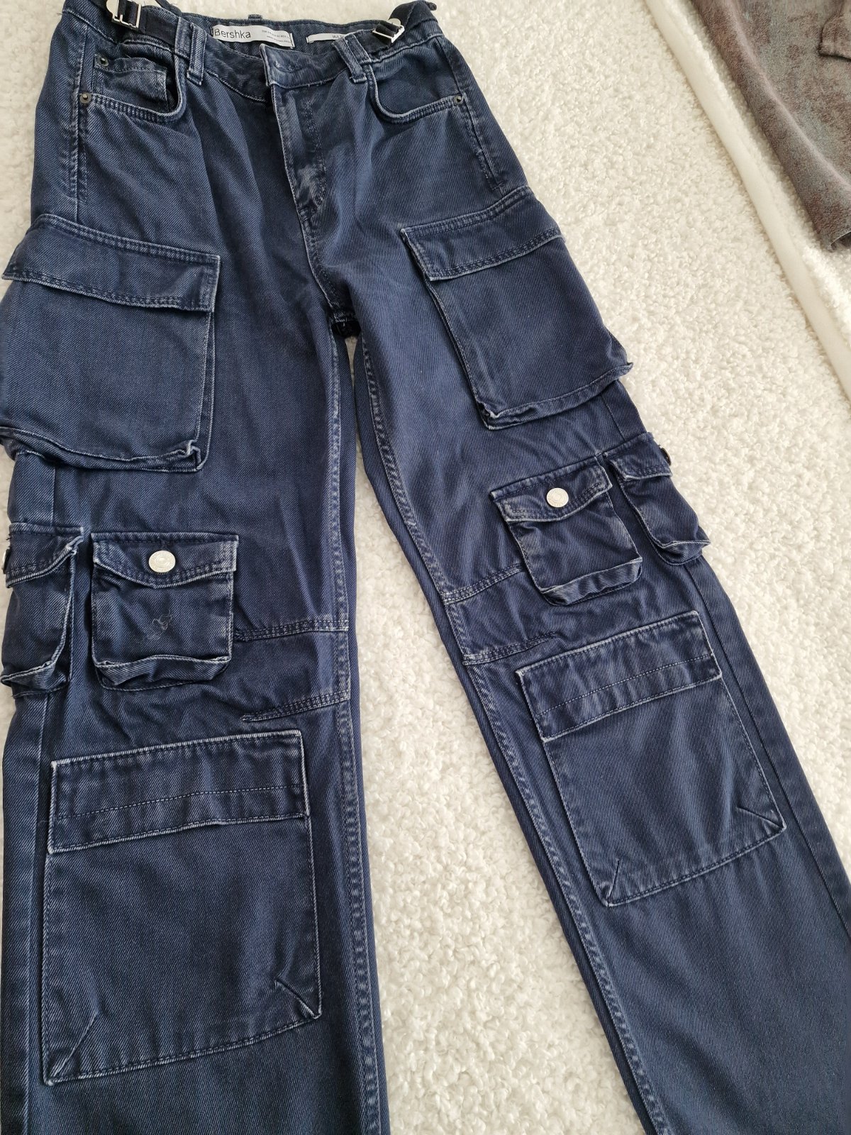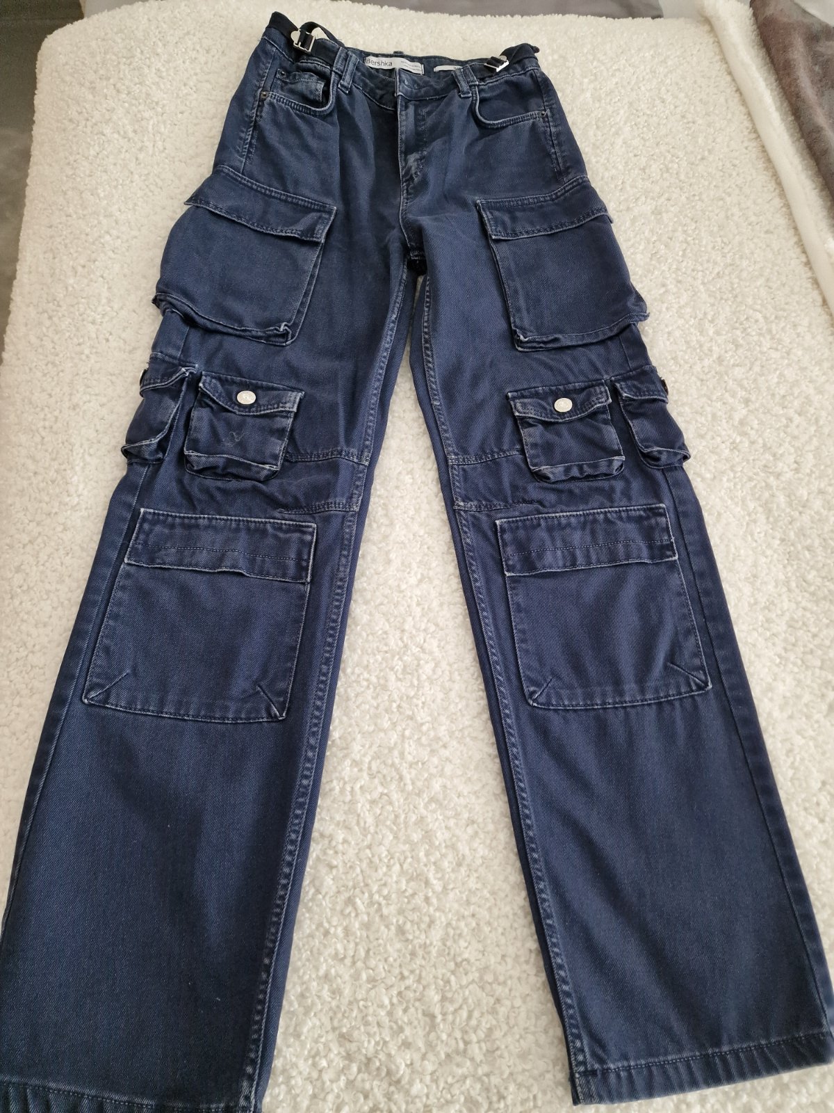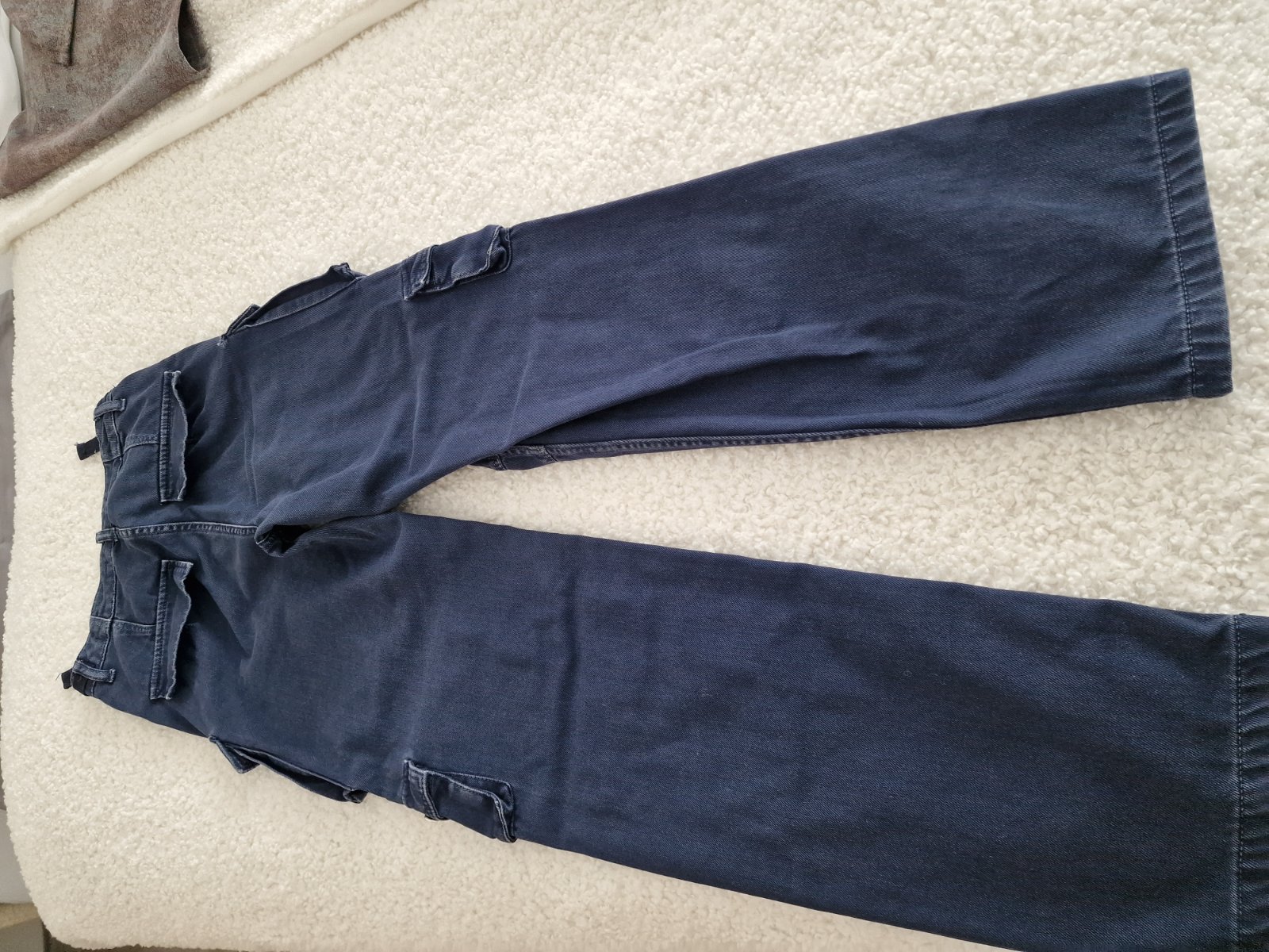 Nádherné a bezchybné rifle Multicargo široké, moderné. Zopár krát oblečené, vyrástli sme.. Viď detailne fotky. Kapsáčové. Dĺžka 104 cm, sed 33 cm, pás 34-35 - sťahovateľný pozri foto detail, šírka pri kolene 23 cm, šírka dole pri členku 21 cm.