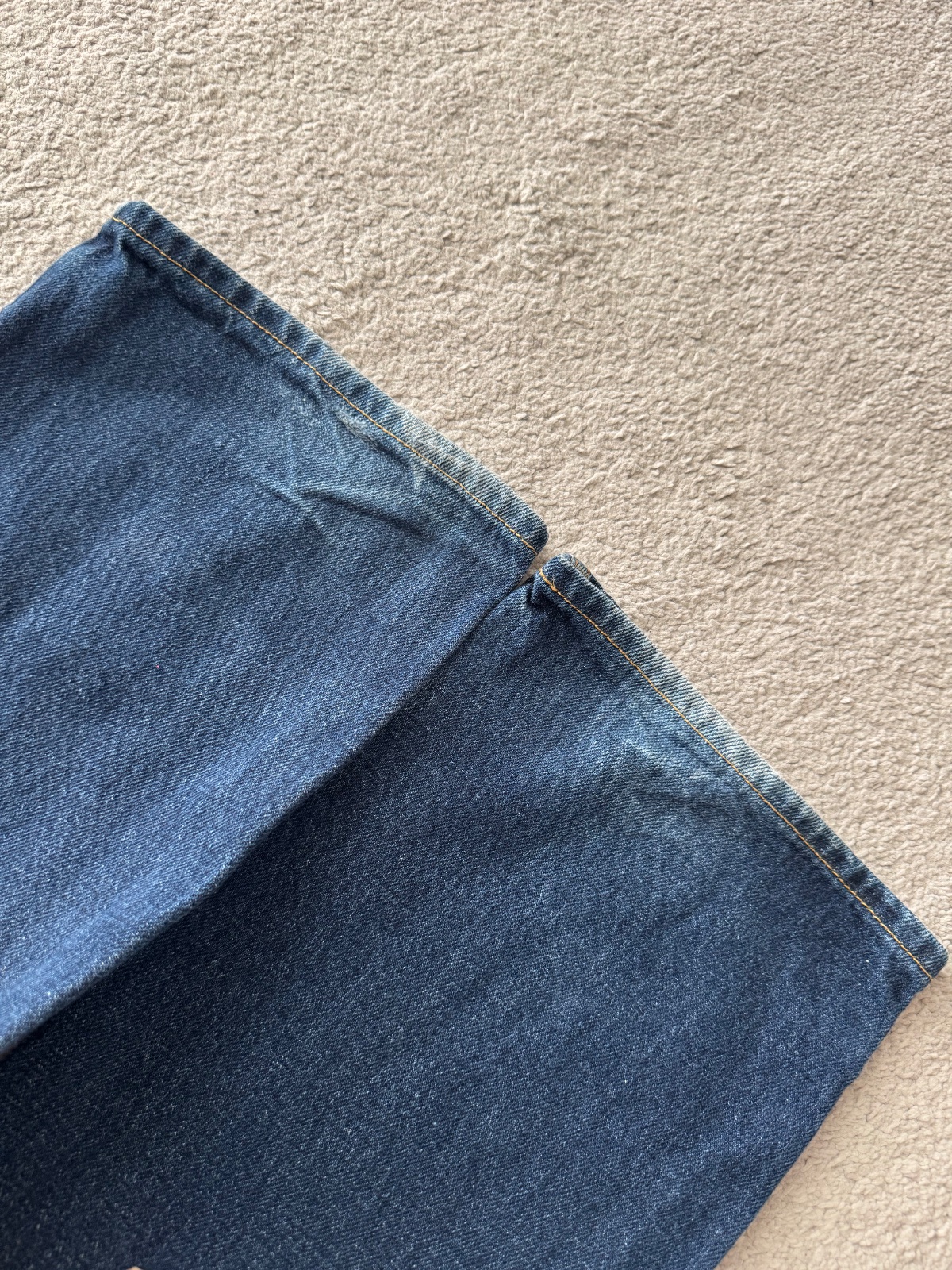 Pánske modré rifle, rovný strih. Ani raz oblečené, ešte s visačkou - 100% stav. Šírka pása 49cm x2, boky 59-60cm x2, celková dĺžka 114-114,50cm, vnútorná dĺžka 80cm, šírka nohavice v spodnej časti...