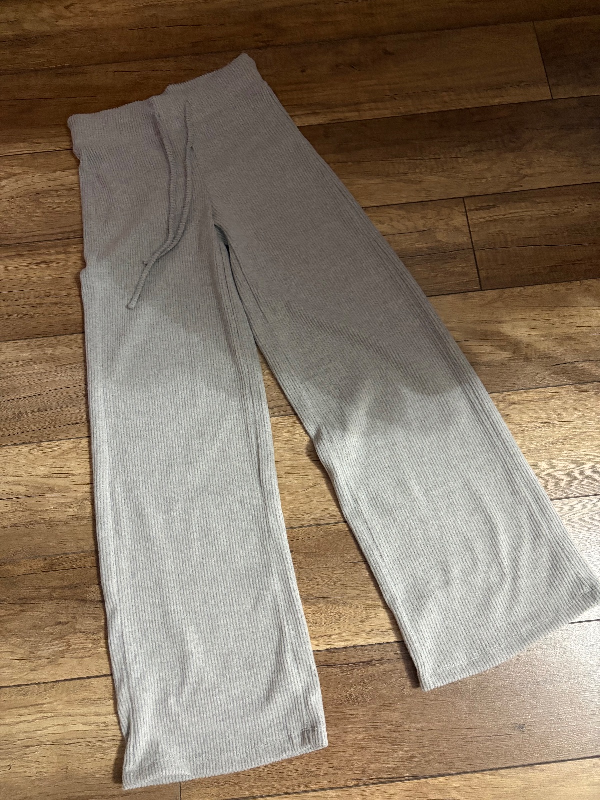 Krásne upletove nohavice vo veľkosti xs . Farba niečo medzi béžovou a sivou . Krásne sedia no mne sú malé posuvam . Úplne nové .