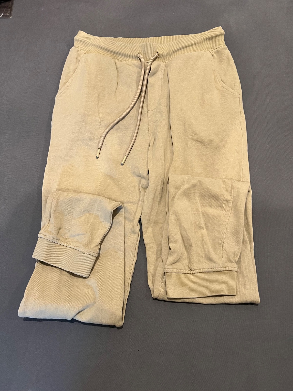 dámske krémové tepláky v páse na gumu+šnúrka na zaviazanie, vrecká, dole zakončené do gumičky, príjemný kvalitný materiál, zloženie: bavlna, polyester, stav: dobrý, nosený, žmolky, značka: Stradiv...