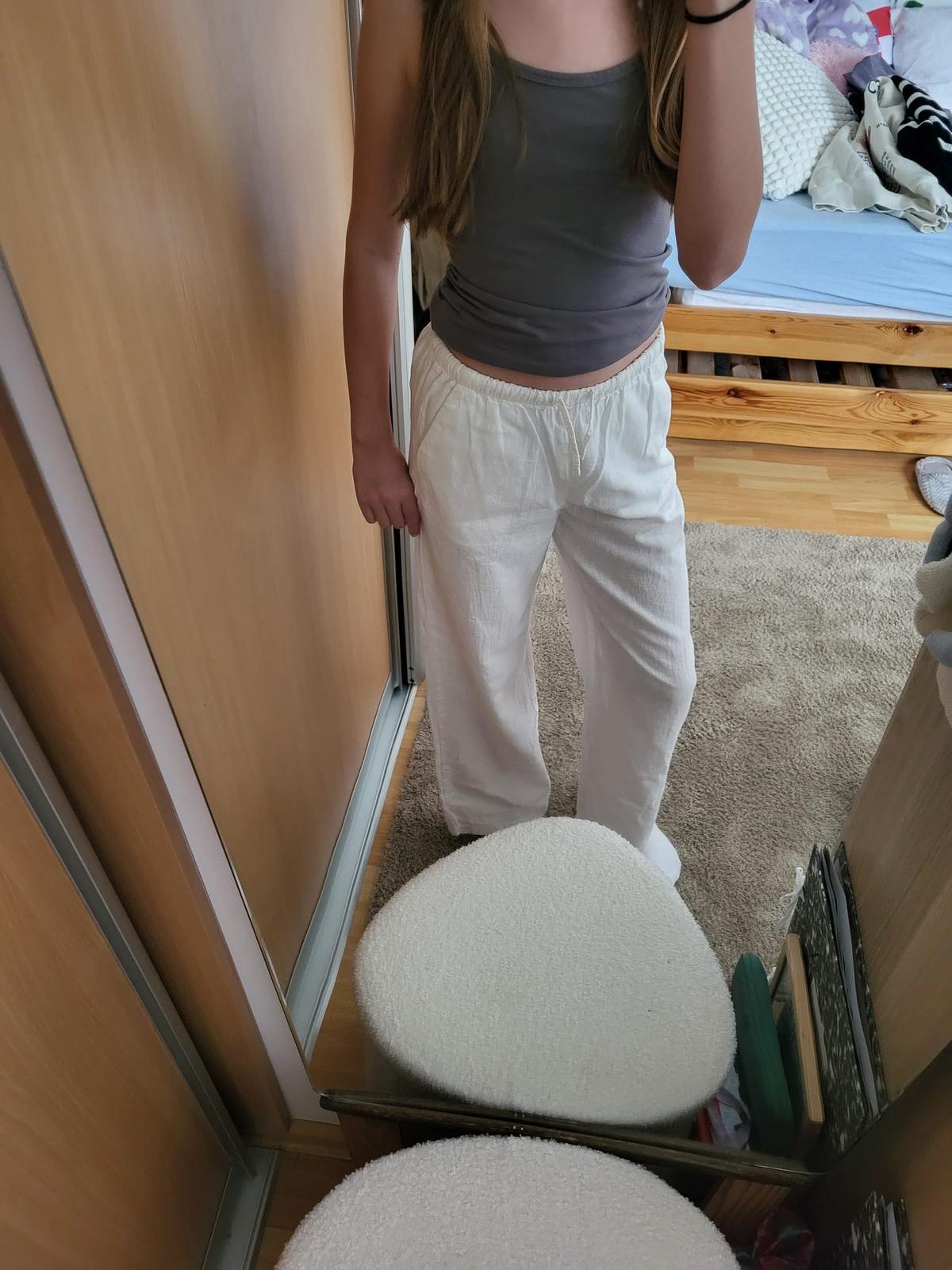 Predám par krát oblečené nohavice s lanom, velkost 146, kupovane v HM za 25€, teraz 12€.