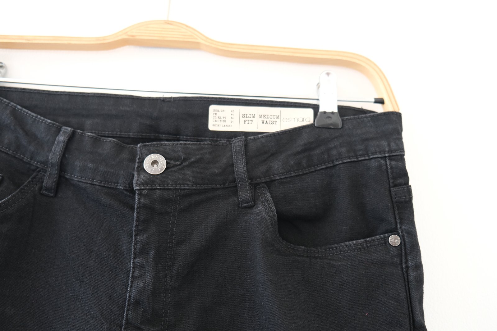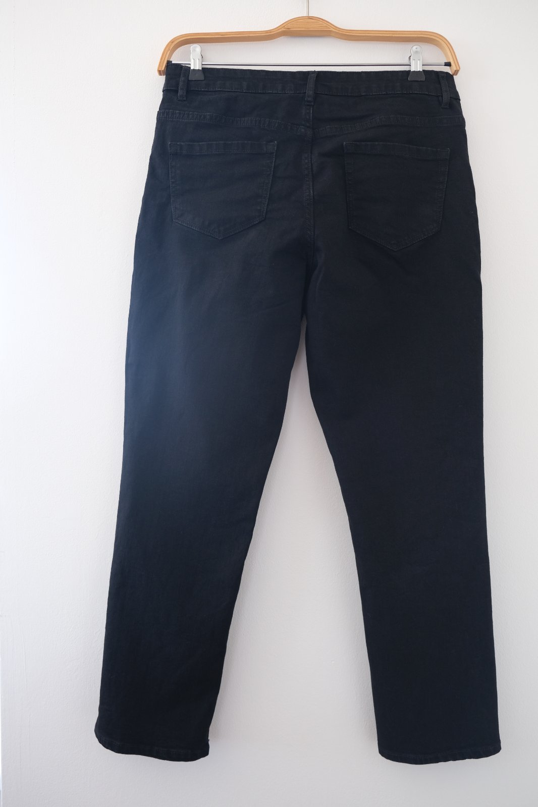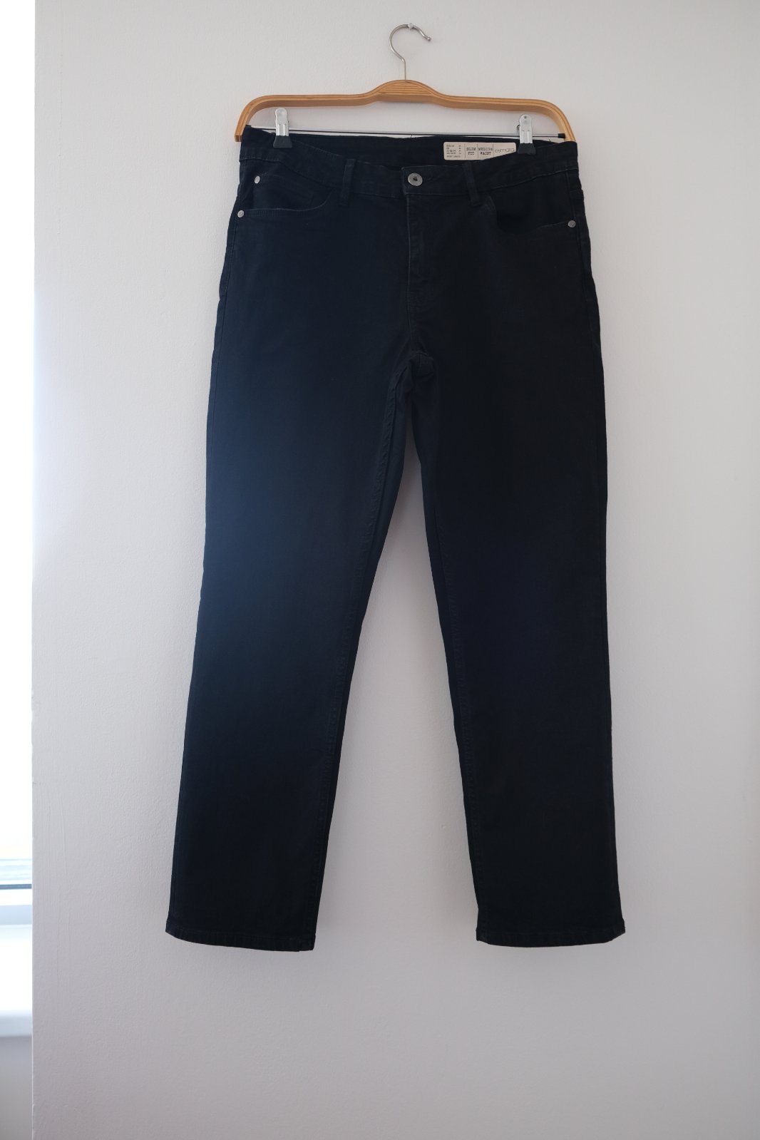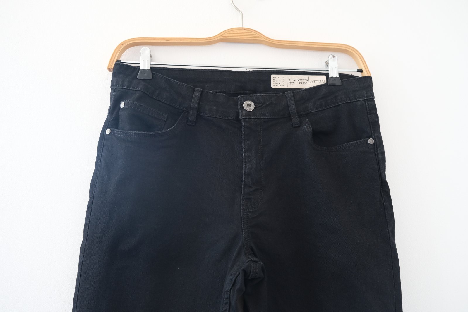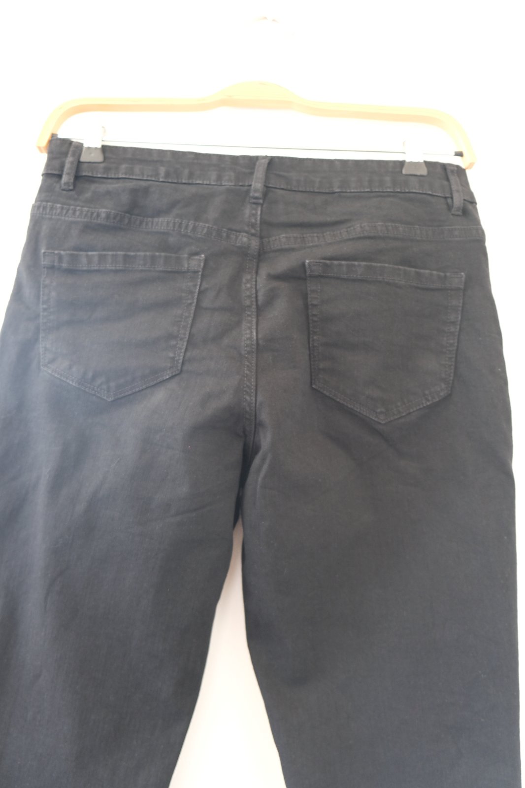 🛒 Rifle č.1/Dámske čierne rifle „Slim Fit" rovný strih, tenký materiál skrátená dĺžka na výšku 162 cm.