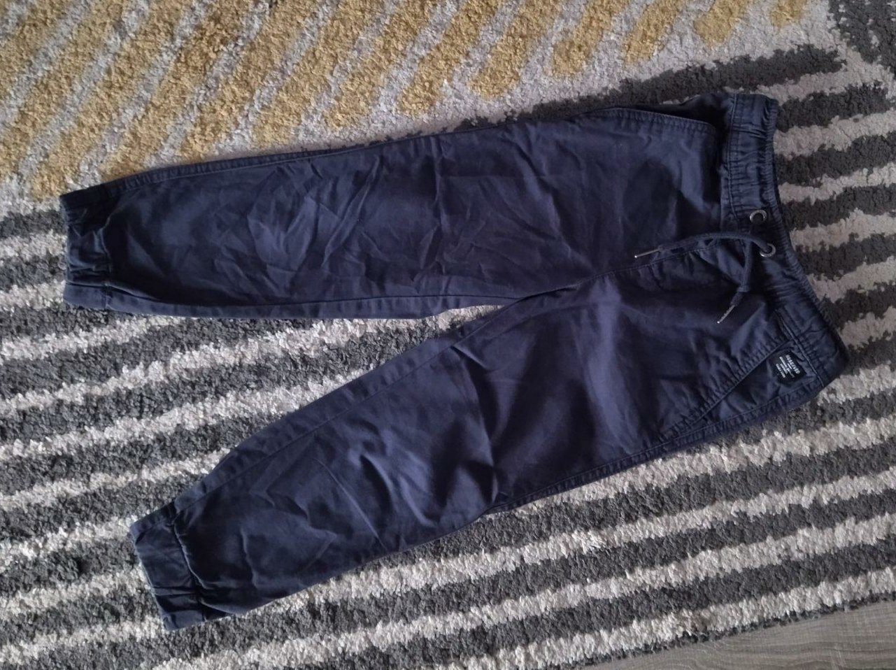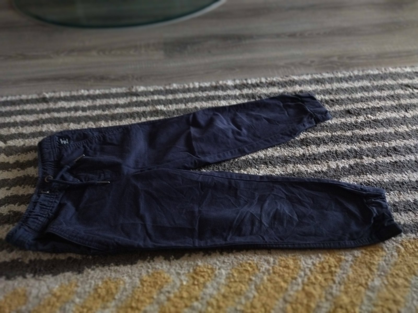 Velmi pekný stav, kvalitné, plátené, funkčná šnúrka v páse, bez žmolkov, bez fľakov, ale majú bledsiu farbu,