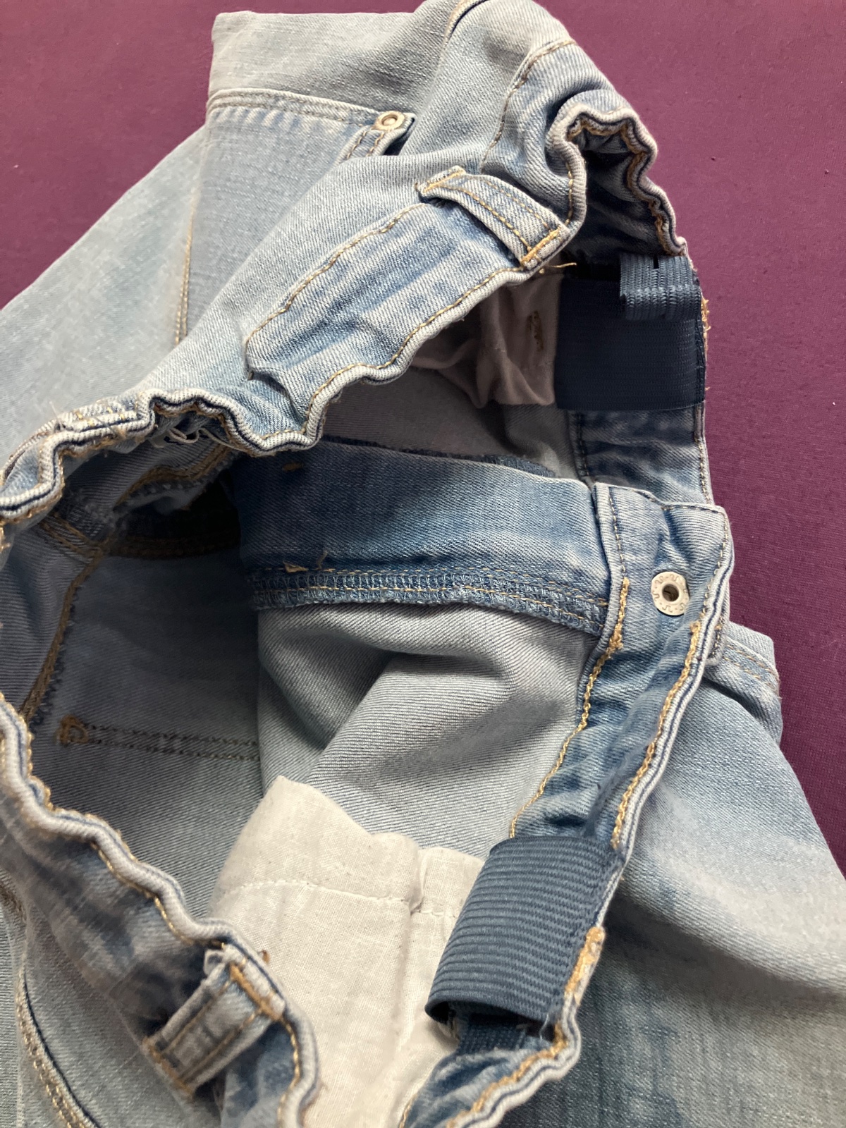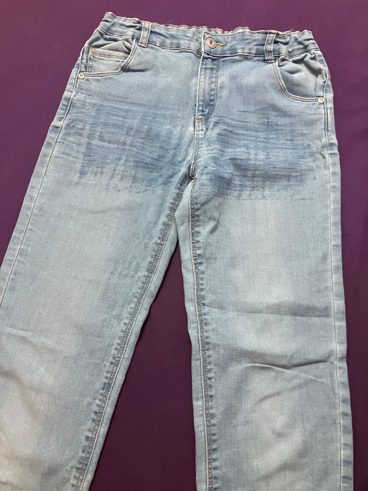 Nosene. Na zadku aj vpredu miestami pokrceny (unaveny) material