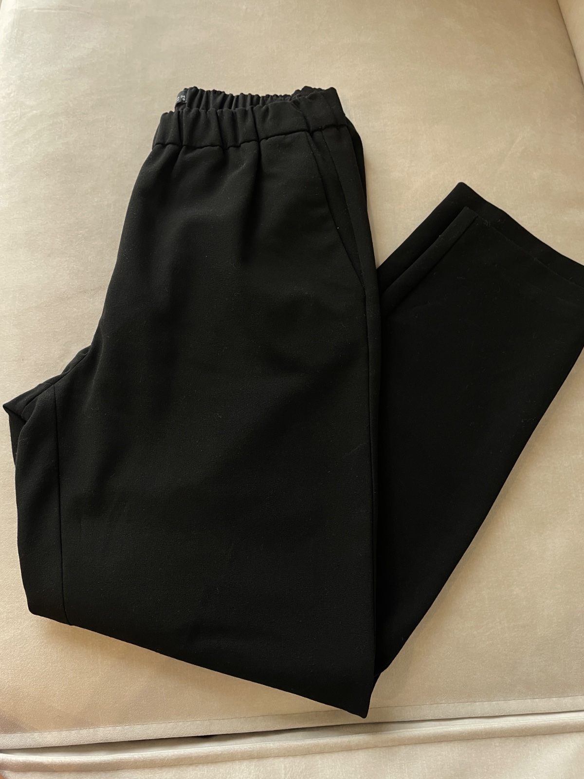Pár x oblečene, bez známok nosenia. Mierne elastické. Sadnu aj na S, mne sú široké na stehnách,.preto posúvam.