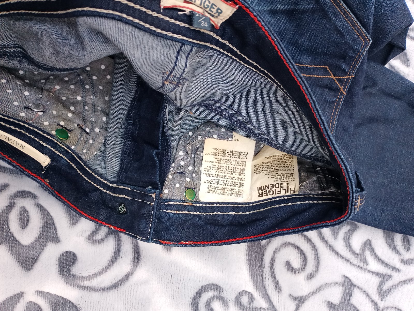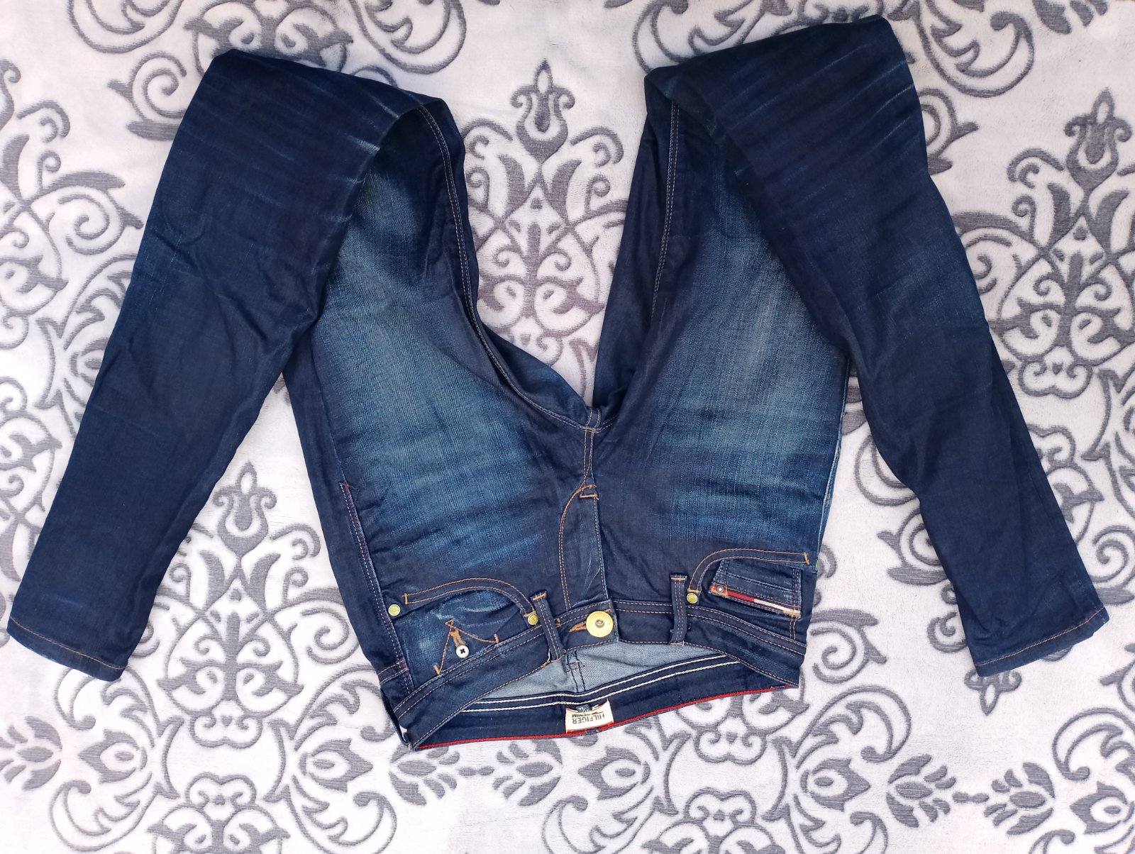 Nosené v dobrom stave, veľkosť udaná 27/34. Logo vzadu na pracke, aj vpredu na vrecku. Veľkostne sedí na 36, šírka 33-38cmx2 a dĺžka 104 cm