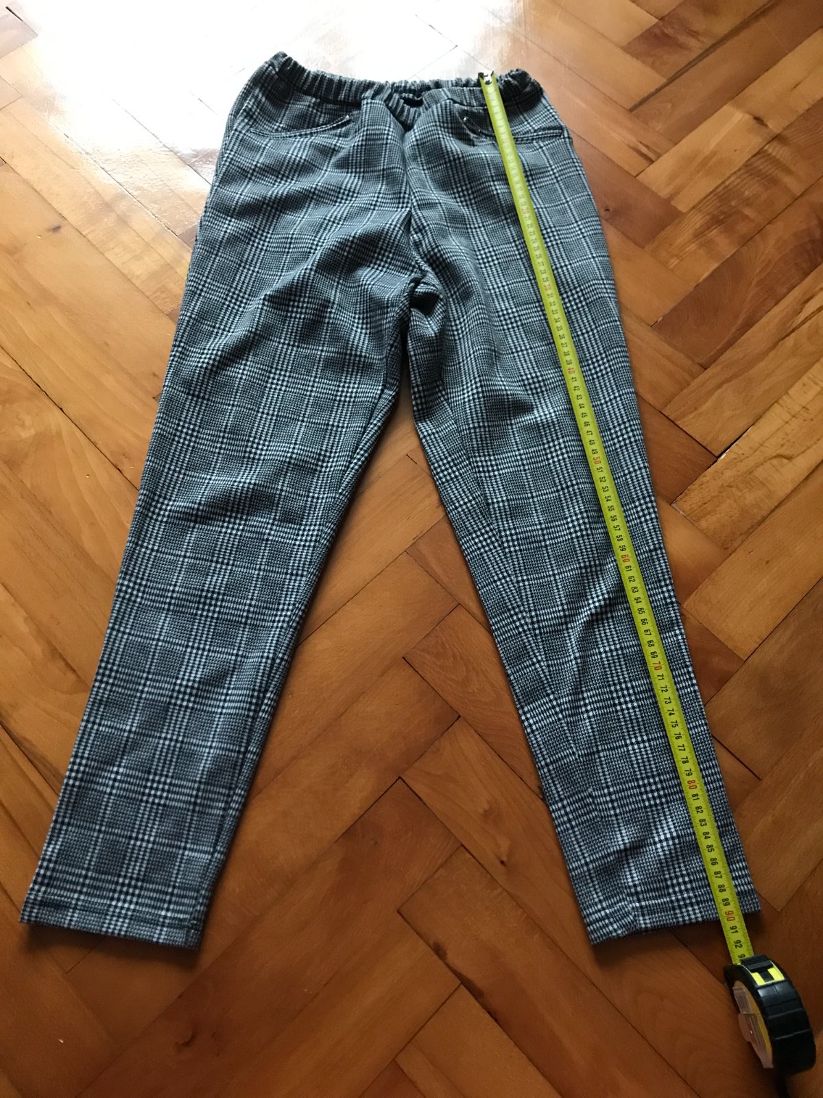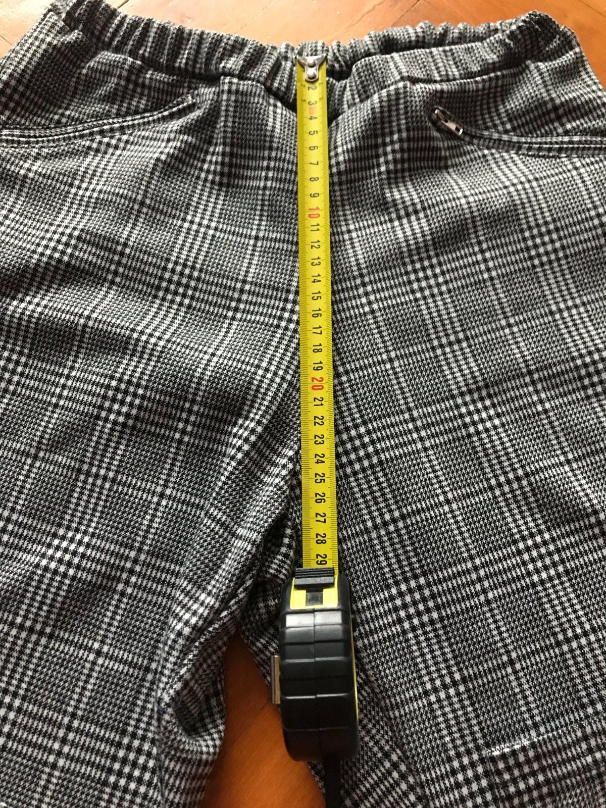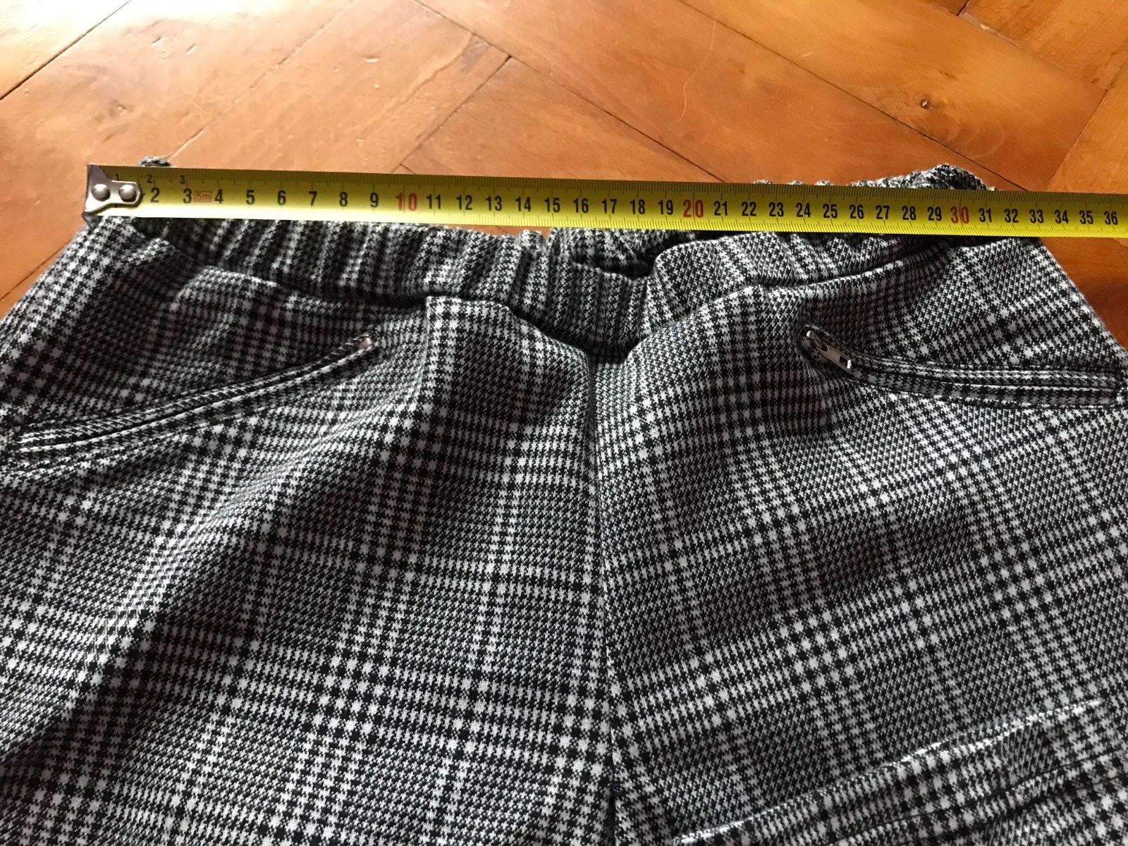 dĺžka -90cm, šírka v páse-32-44x2cm (na gumu,natiahne sa), dĺžka vnútorného stehna- 62cm, predný sed - 28cm, zadný sed - 33cm,šírka bokov- 43x2cm