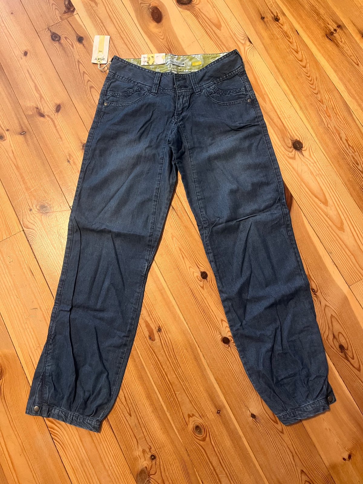 Krasne letne tenke rifle- nove, bez visaciek. Velkost je uvedena ako 27. ROZMERY: celkova dlzka od pasa po koniec nohavice: 109cm, dlzka od rozkroku po koniec: 81cm,sirka v pase: 42cm, sirka stehna...