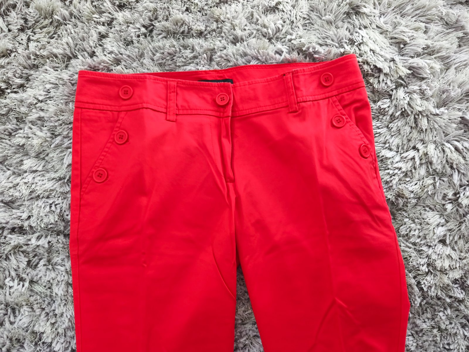 Krásne, koralovo - červená farba. Sedia nádherne, oblečené 2x.... dovolím si tvrdiť, že sú nové! Pc 26,- bezchybný stav, bez akýchkoľvek známok nosenia.