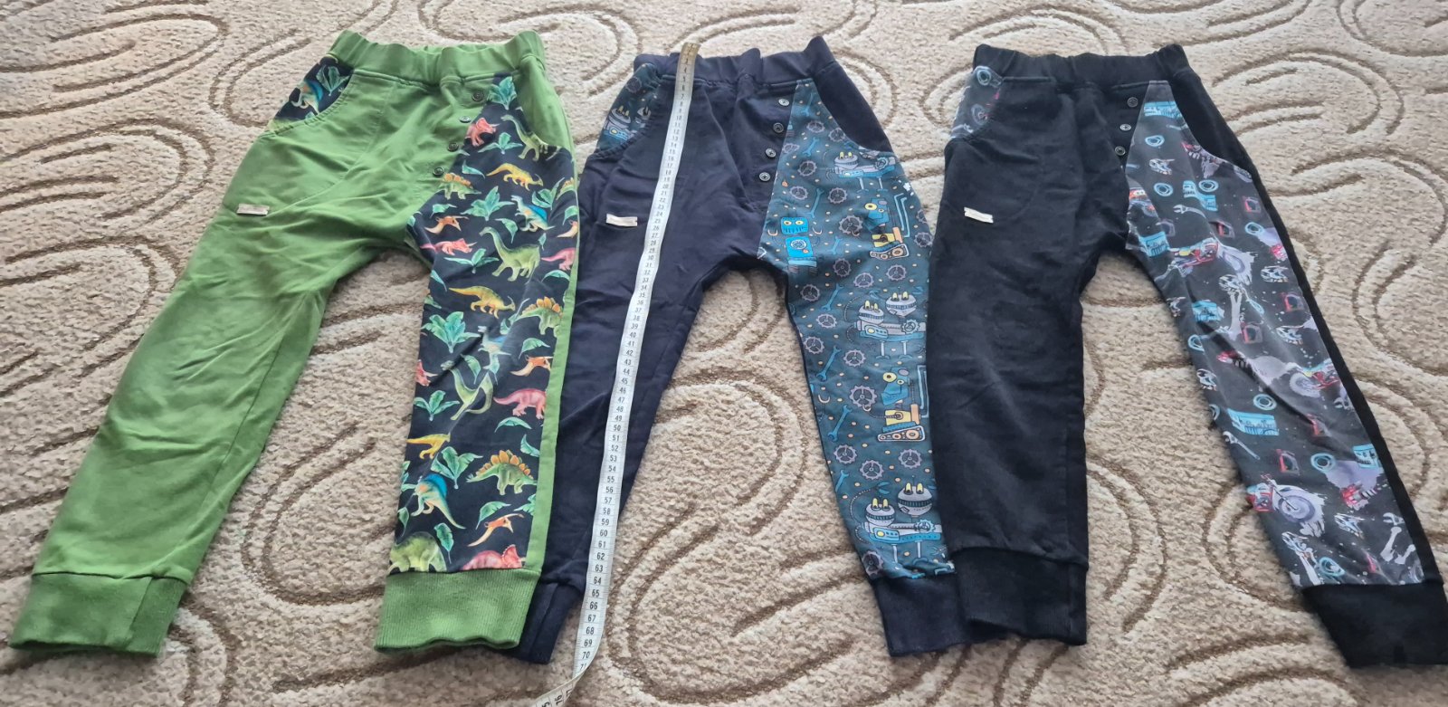 Pudláčkovo. Nosené, vyblednutejšie farby. Do pasu som vkladala gumku. Kus 5 eur, všetky spolu 12 eur.