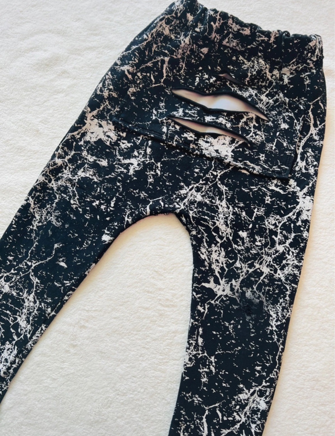 nosene,velmi kvalitne,chyba visacka,ale nosili sme 92/98,zial na 1kolienku dierka,straca sa vo vzore