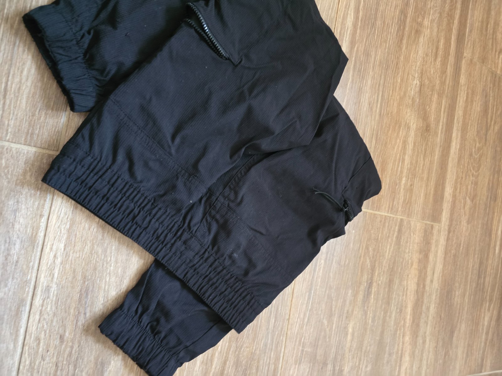 Čierne tenšie roll up nohavice, dĺžka 83cm, málilinko bledšie na kolienkach, na vek 9-10 ale nosené skôr, tričko george 122-128, dĺžka 44cm, rukávy už nie sú také snehobiele, cena spolu Nechajte s...