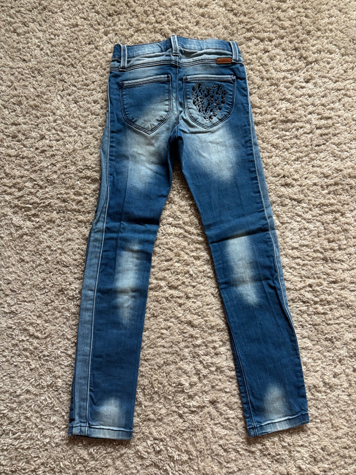Nosené, stále dobré do škôlky či na bežné nosenie. Na kolenách malé zatiahnutie, ale nie sú to dierky, viď foto je to ledva vidieť. Inak veľmi pekne sedia na postave a sú také iné ako klasické stri...
