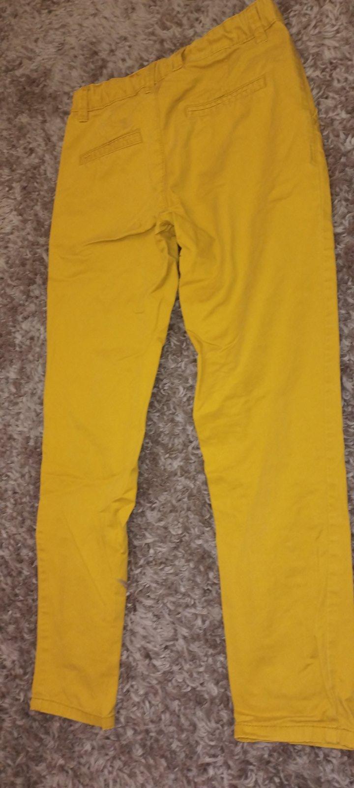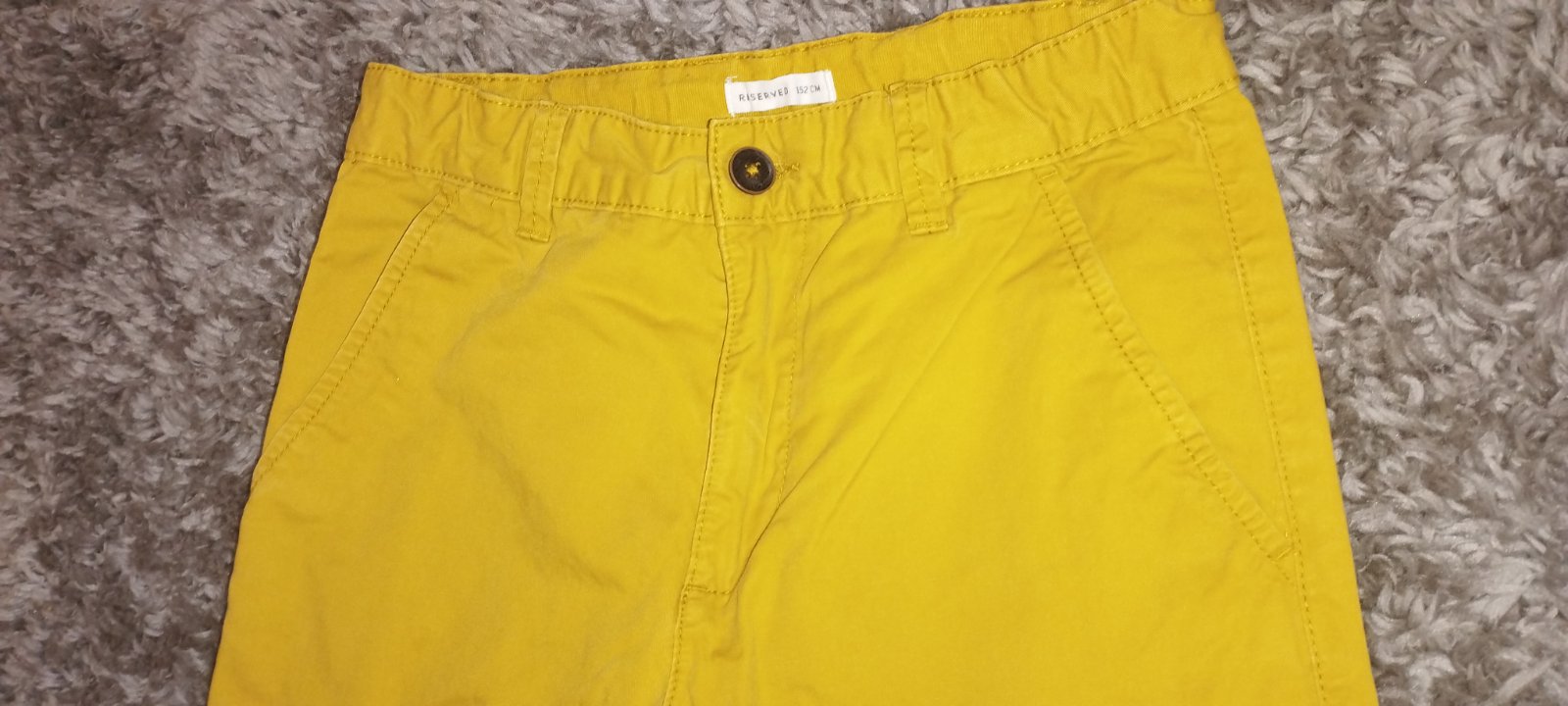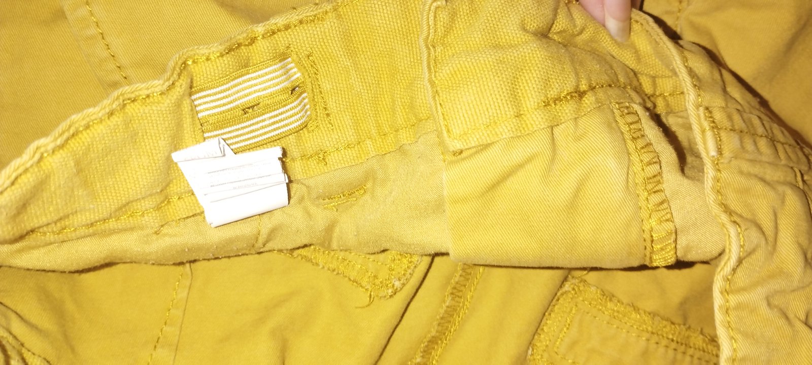 Pekné letné nohavice, je na nich malý fliačik, čo je zohľadnené v cene. Farba svetlá horčicová.