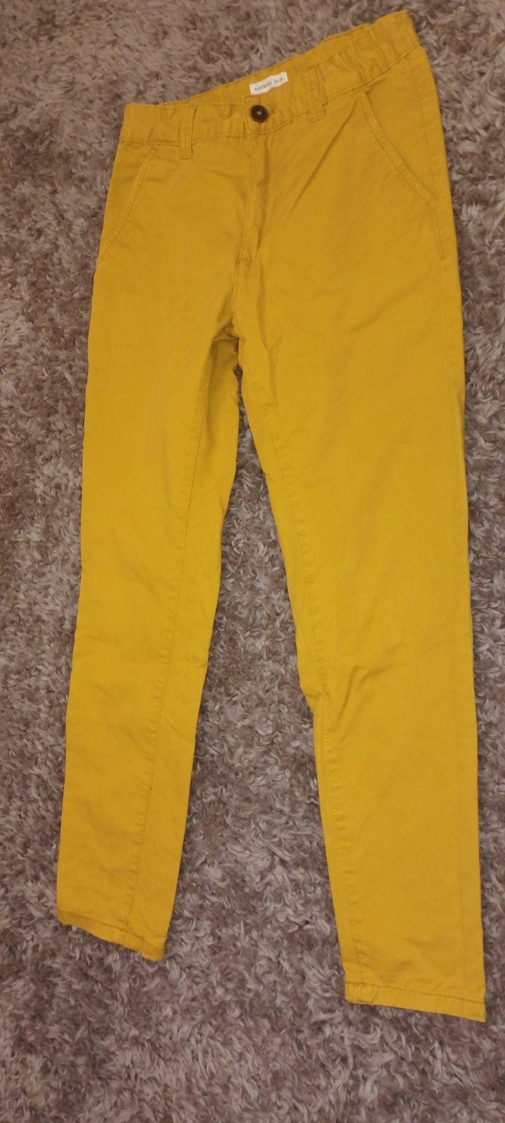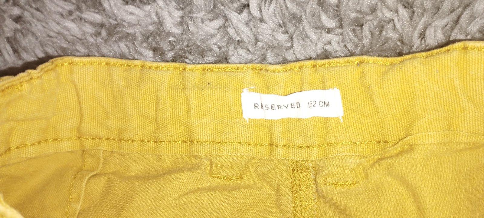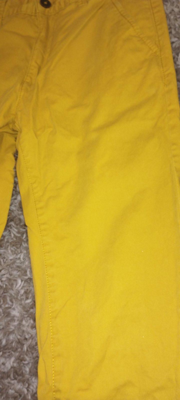Pekné letné nohavice, je na nich malý fliačik, čo je zohľadnené v cene. Farba svetlá horčicová.