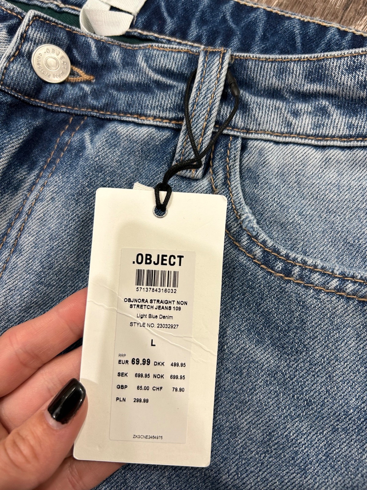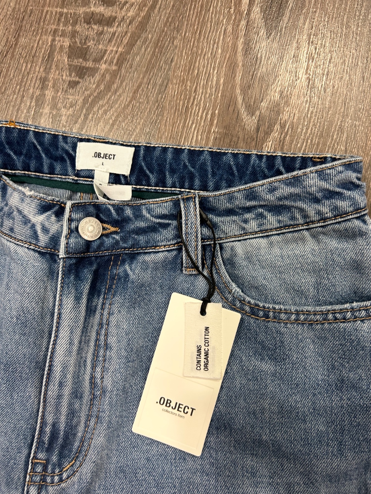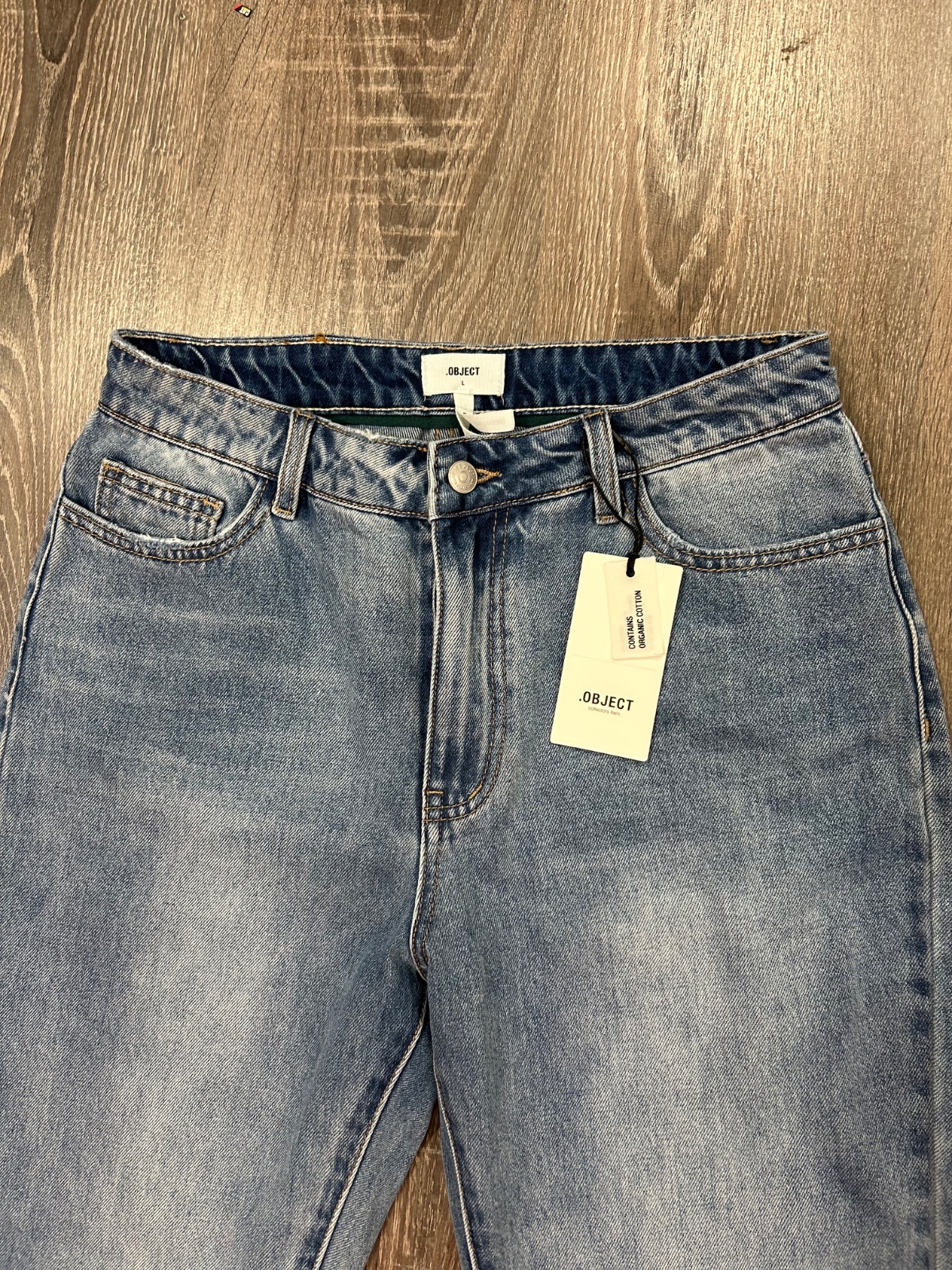 Object nove damske stylove rifle z organickej bavlny,vo velkosti L,PC 70 eur , dlzka je 98cm,sirka v pase je 39x2cm,predny sed je 29cm a zadny je 40cm