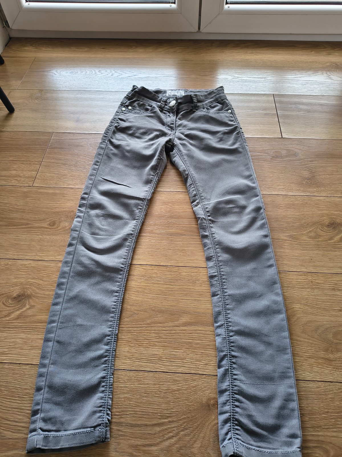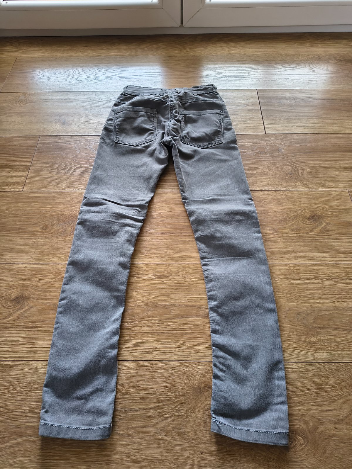 NEXT originál fľakaté rifličky svetlej šedej farby, úzky slimkový strih, veľkosť 140cm na 10rokov, v páse gumička na regulovanie veľkosti, 99% bavlna 1% elastan, rozmery: dl.-87cm, š.-2*34,5cm, vnú...