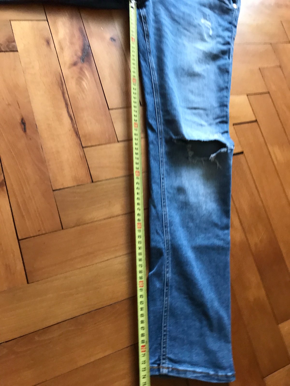 dĺžka -100cm, šírka v páse-40-47x2cm, dĺžka vnútorného stehna- 74cm, predný sed - 24cm, zadný sed - 34cm