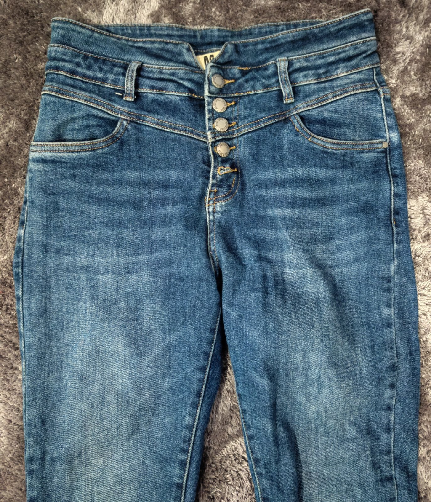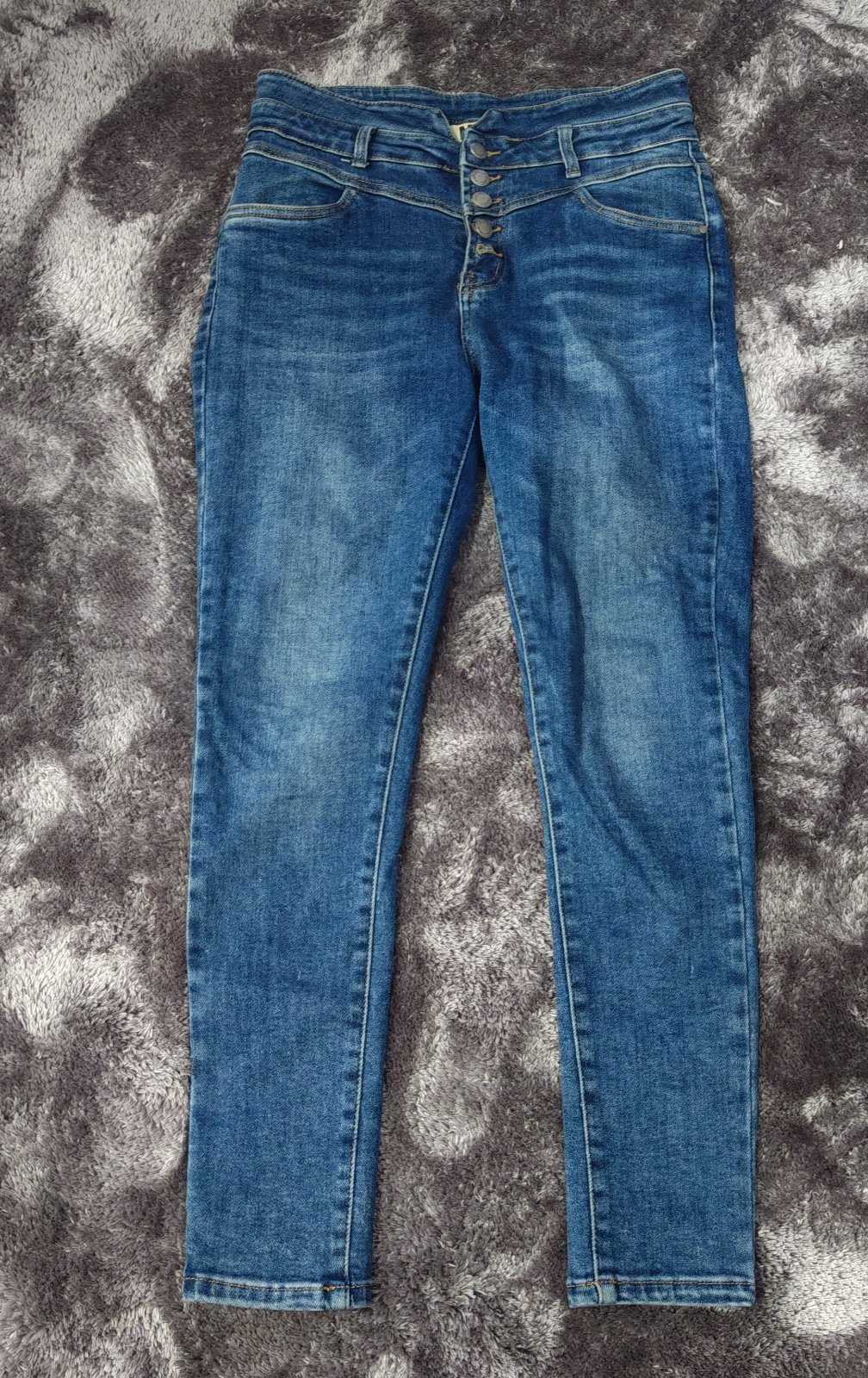 Elasticke ,makke rifle s vyssim pasom,zapinanie na gombiky,velkostne tak L/XL.Farba je tmavsia ako na foto.Su velmi poddajne.Nosene,v super stave,bez chyb