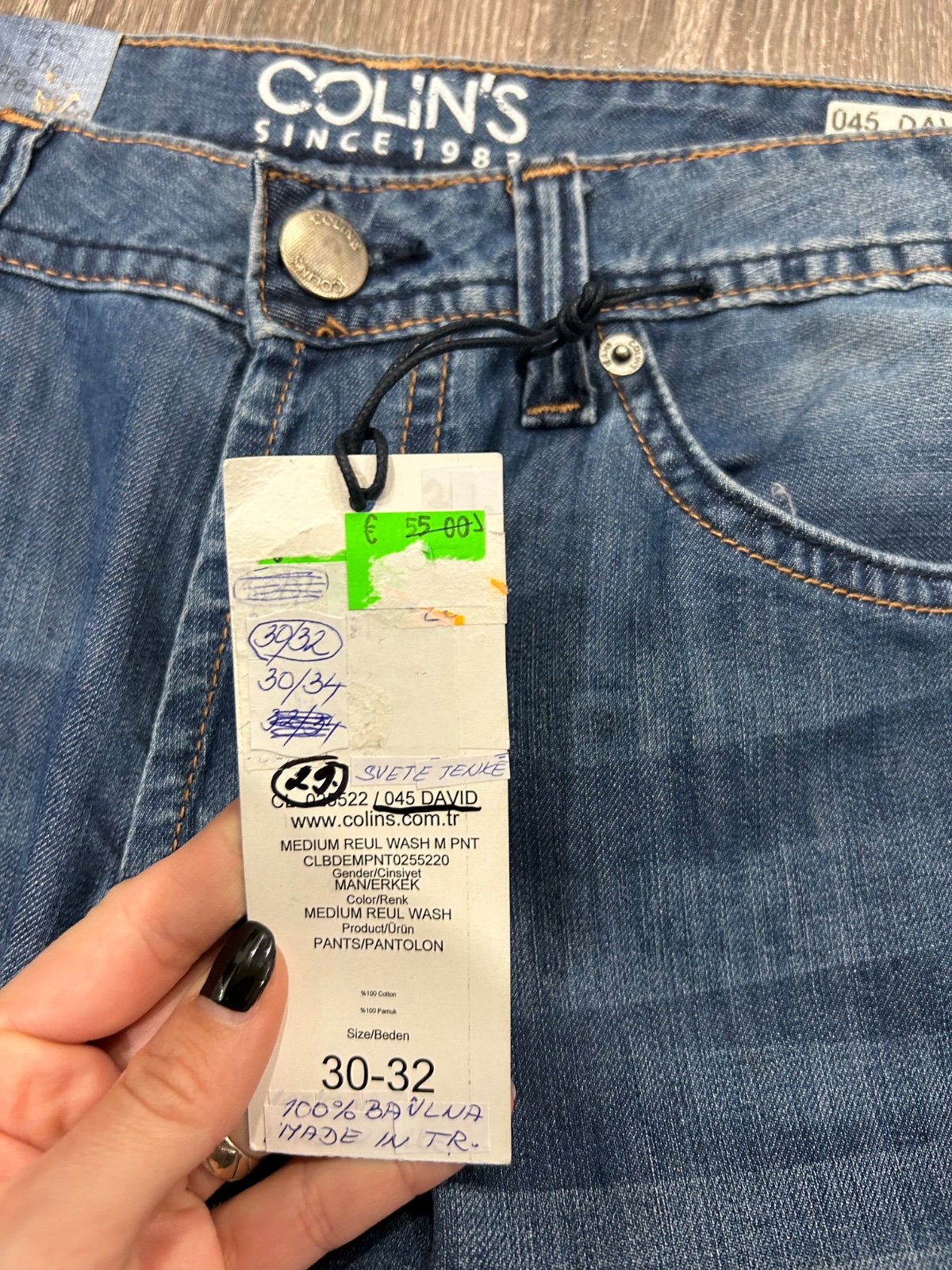 Colins nove panske rifle komplet s visackou,regular fit,vhodne na darovanie,velkost W30 L 32vPC55eur,dlzka je 105cm,sirka v pase je 42x2cm,predny sed je 27cm a zadny sed je 33cm