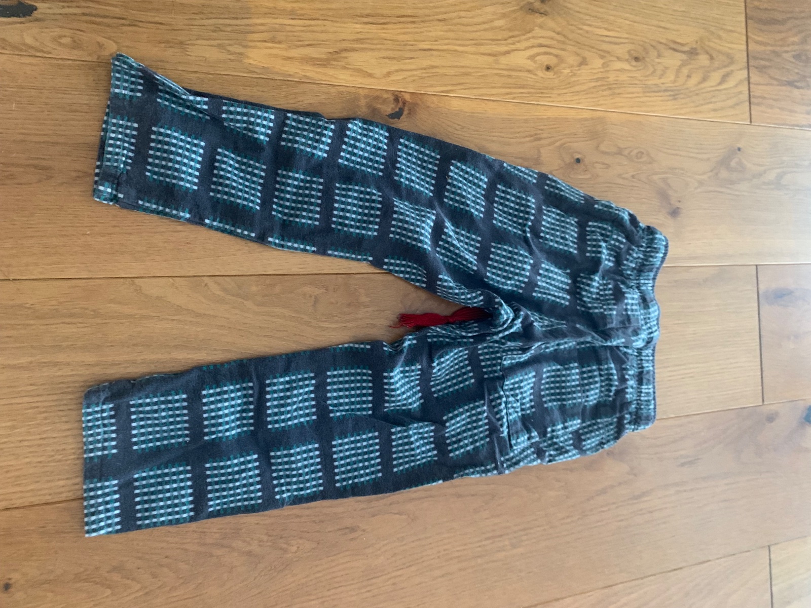 nosené, diera na kolene, vhodné napríklad na skrátenie na kraťasy, sedia na 110