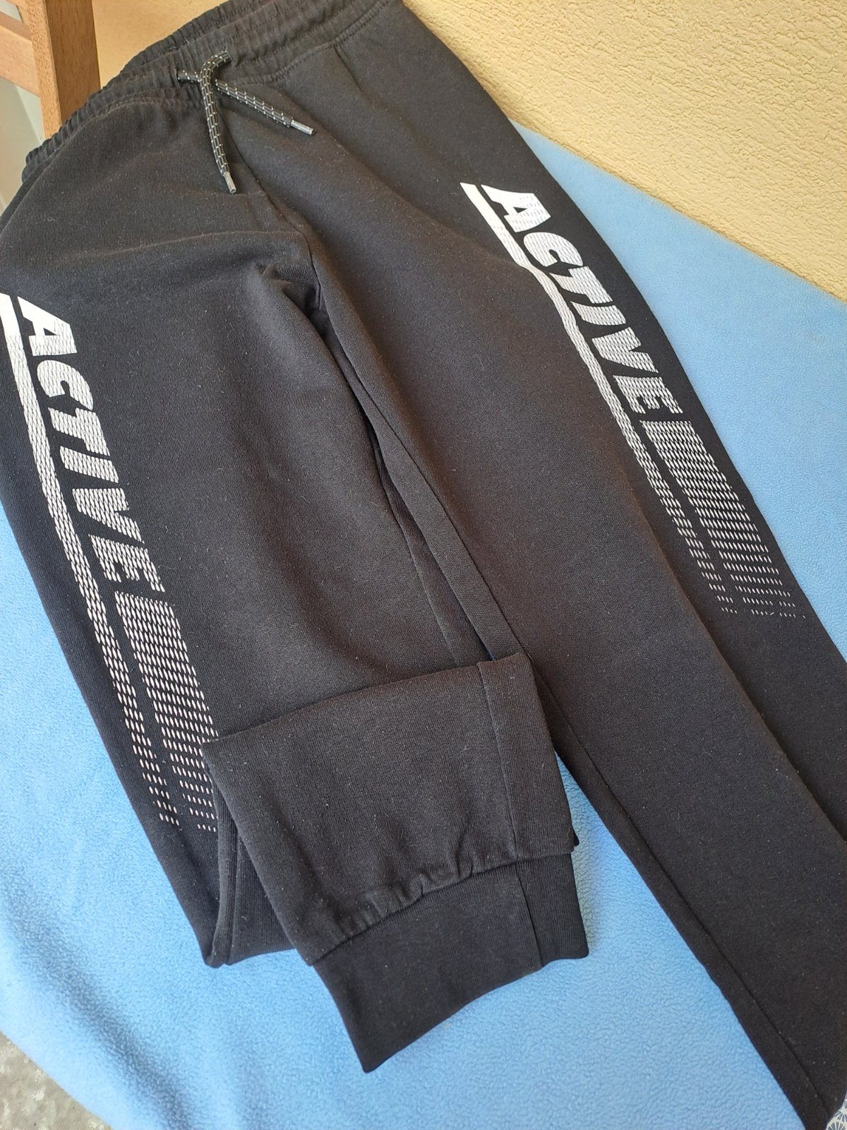 Tepláky 2ks čierne. Dobrý nosený stav, majú malé žmolky. Bez poškodení. Rozmery: dĺžka celkom 86 cm vnútorná dĺžka 61 cm, šírka v páse 31-32 cm.
