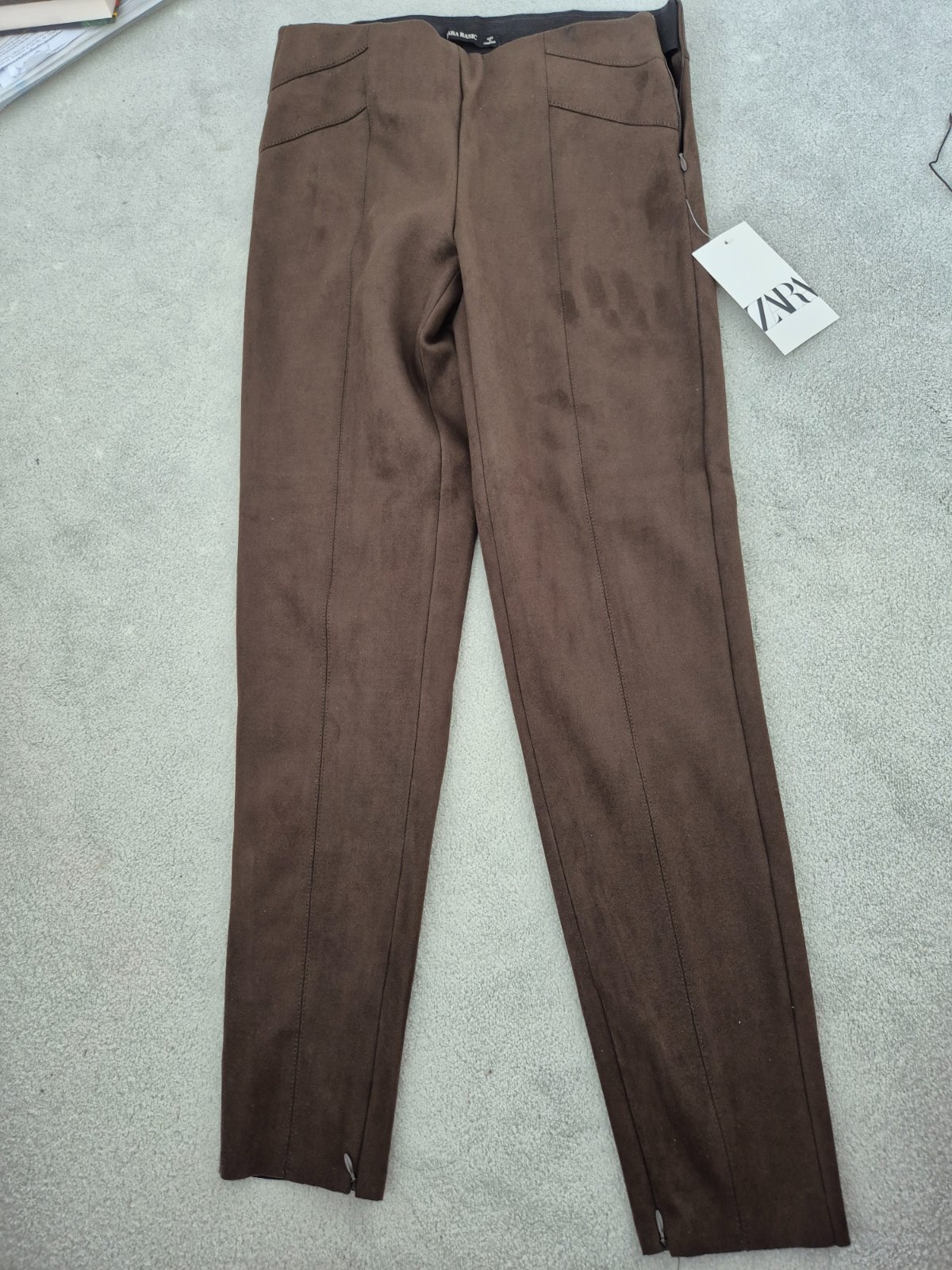 moderná kaki farba na toto obdobie, v páse zvnútra široká guma, prispôsobia sa postave, nové, s visačkou
