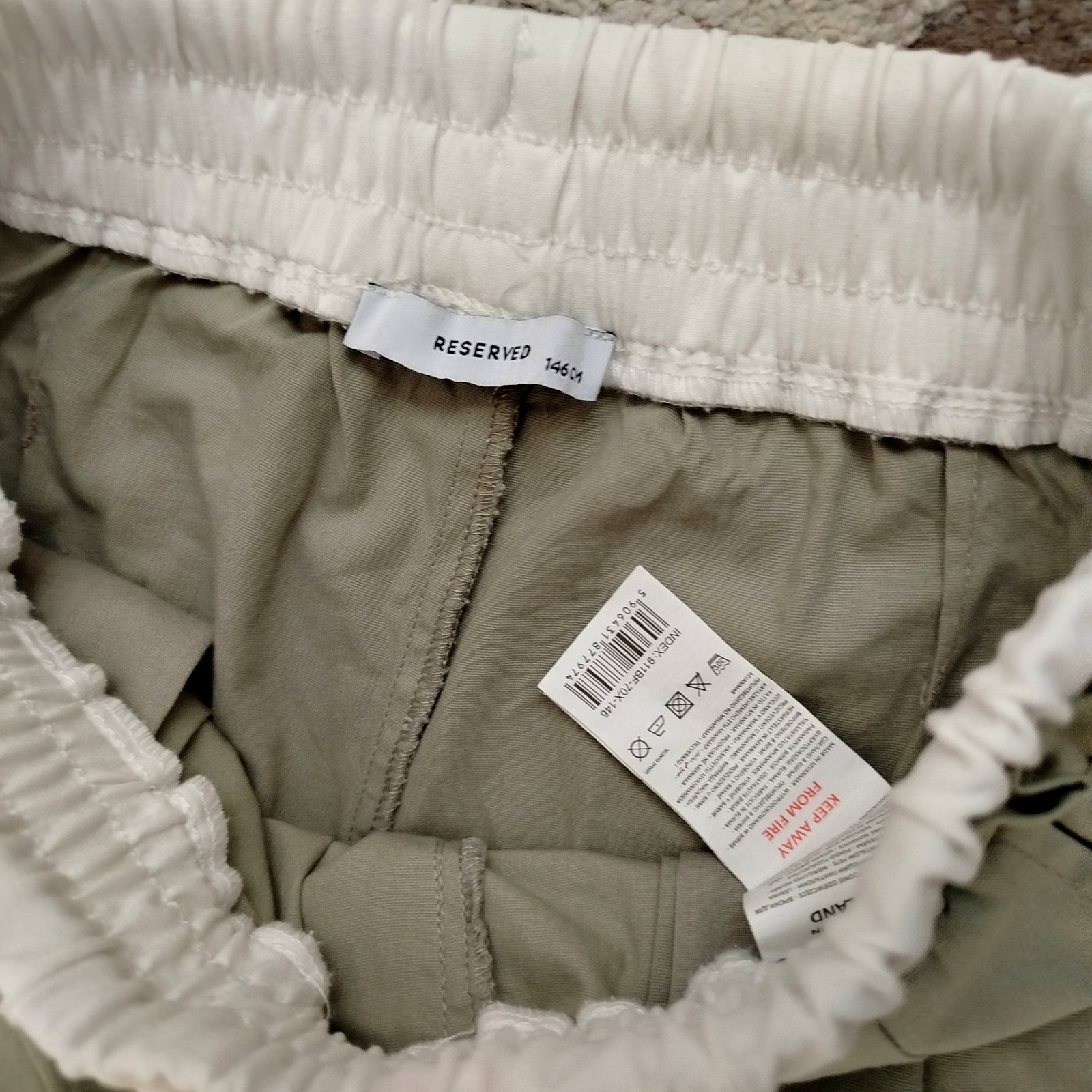 Pohodlné bavlnené kapsáče Reserved, len opraté, top stav, dcére sú malé. Veľkosť 146 ale ponosíte aj ako 152. Dĺžka 87cm, pás v kľude 31cm a natiahne sa až do 37cm, je na gumu. Cena + pošta.