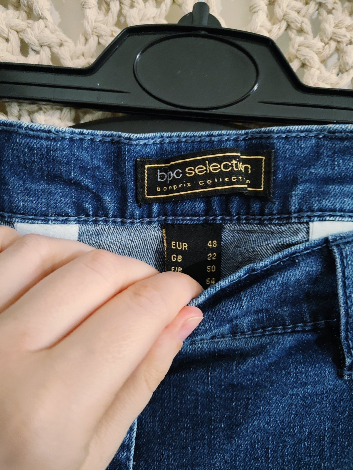 Dámske rifle rovného strihu, veľ. XXL - rozmery: bočná dlžka 102cm, od rozkroku 74cm, pás 2x47-54cm. Rifle majú vpredu aj vzadu decentné výšivky, sú mierne elastické, prispôsobia sa postave. Pár kr...