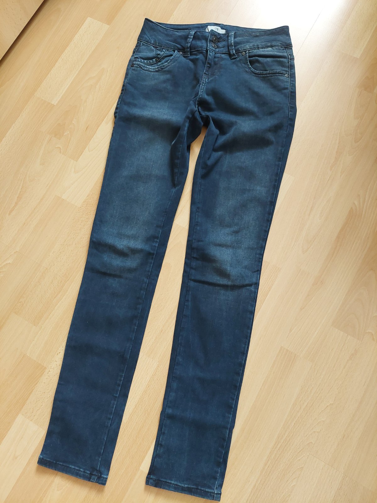Nové, raz oblečené rifle. Nevhodná kúpa v obchode - dala som na rady predavačky a nie na svoj pocit. :) Rifle sú mi tesné a cítim sa v nich veľmi stiahnutá. Rifle majú nižší sed a rovný strih. Farba je veľmi pekná - tzv. kovovo modrá. V prípade záujmu rifle rada premeriam.