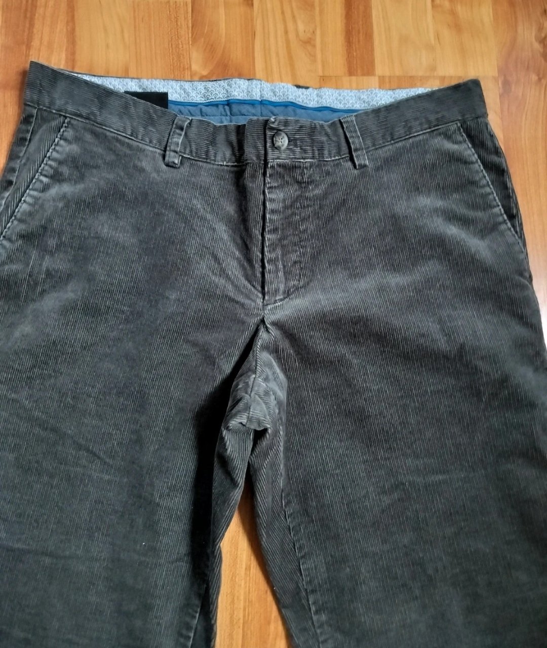 Pánske nohavice z obleku. Zapínanie je vpredu na zips a háčik. Dĺžka je 95cm,obvod pása je 94cm a obvod bokov je 116cm. kód 1303A