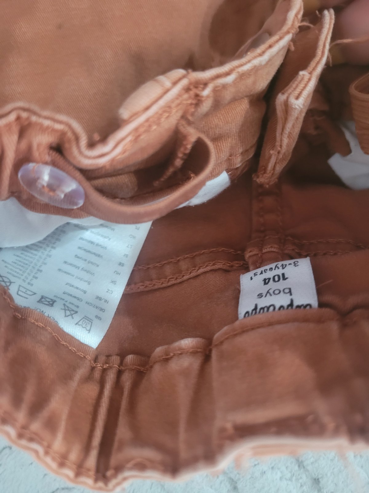 Farba tehlova,kolienka mierne ošuchane.Este vhodne aj do skolky.