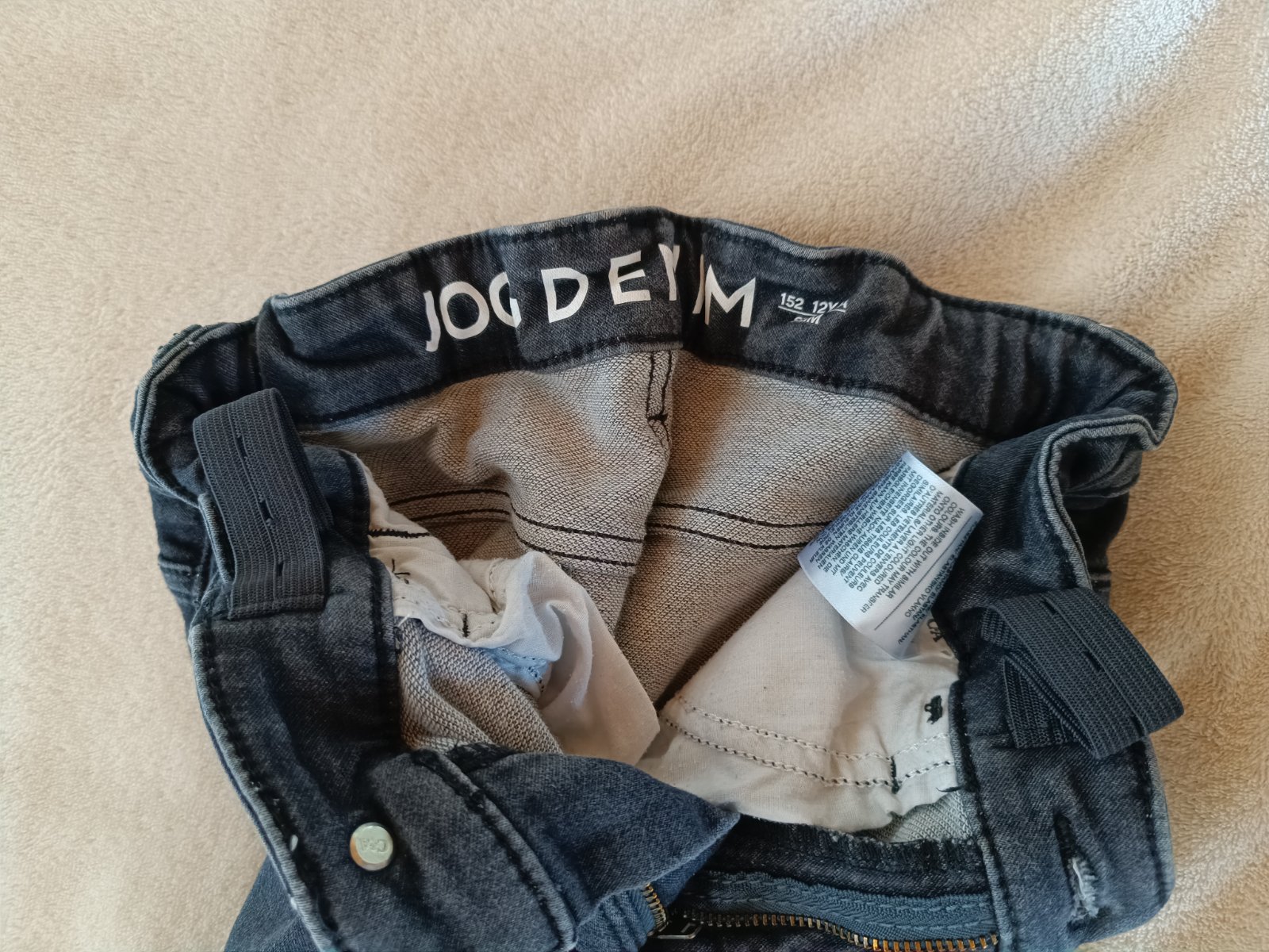 Dievčenské rifle slim, pás sa dá upraviť pomocou gumičky. Bez poškodení.