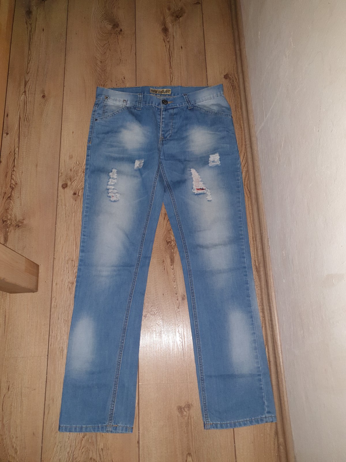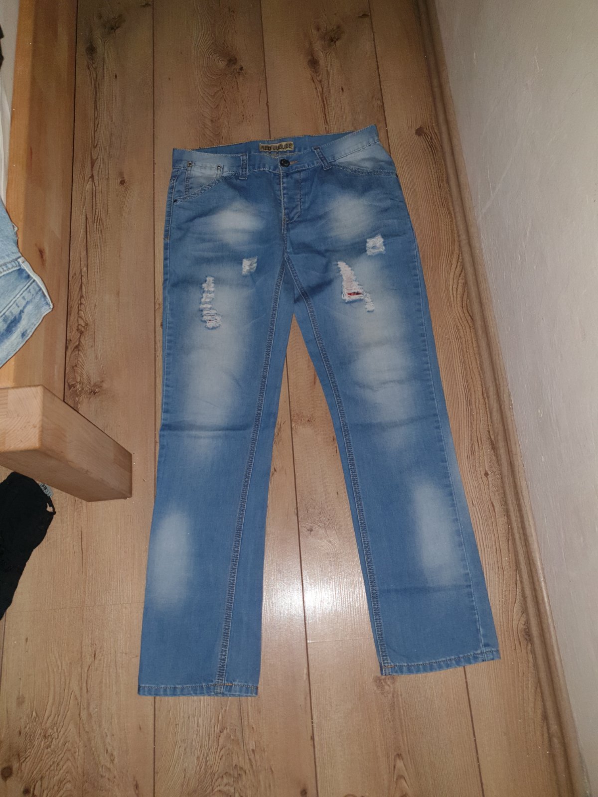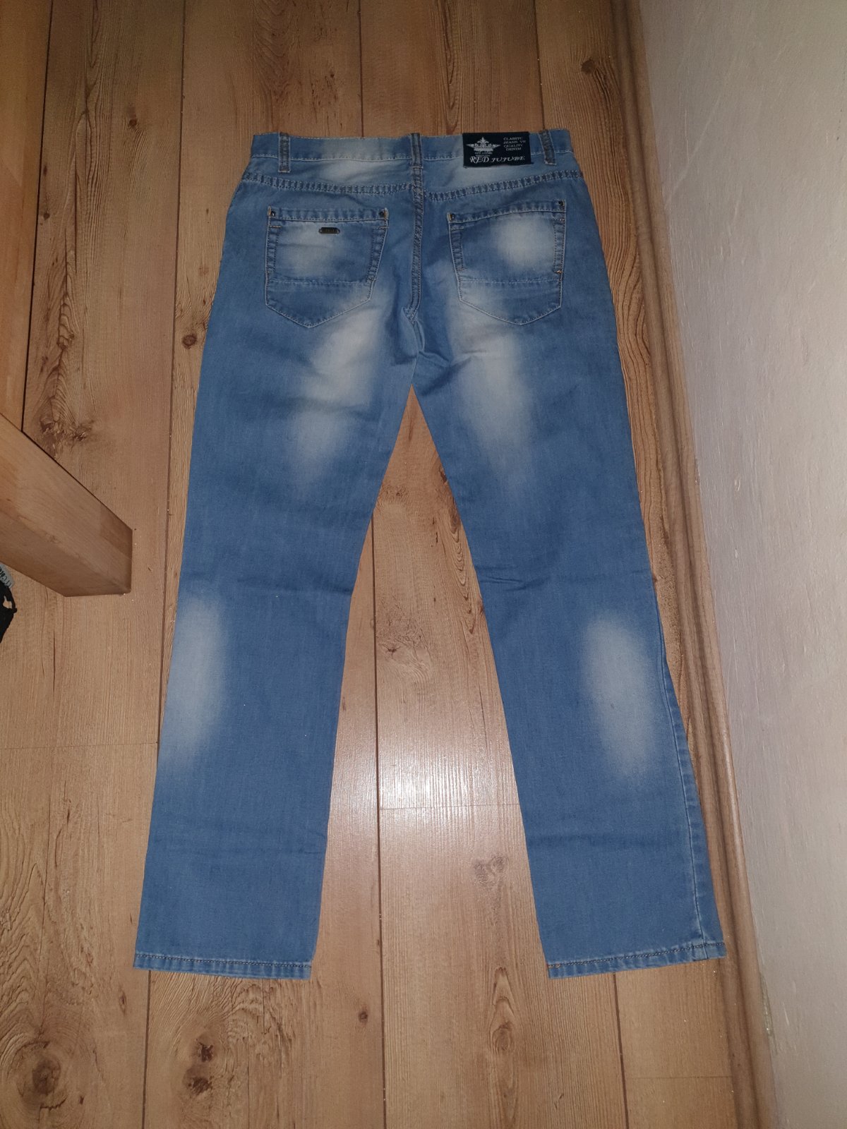 Pánske rifle, rovný strih. Ani raz neboli oblečené - 100% stav. Šírka pása 48-49cm x2, boky 61-63cm x2, celková dĺžka 110-111cm, vnútorná dĺžka 80cm, šírka nohavice v spodnej časti 25cm.