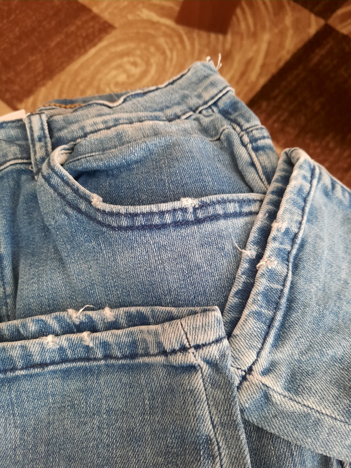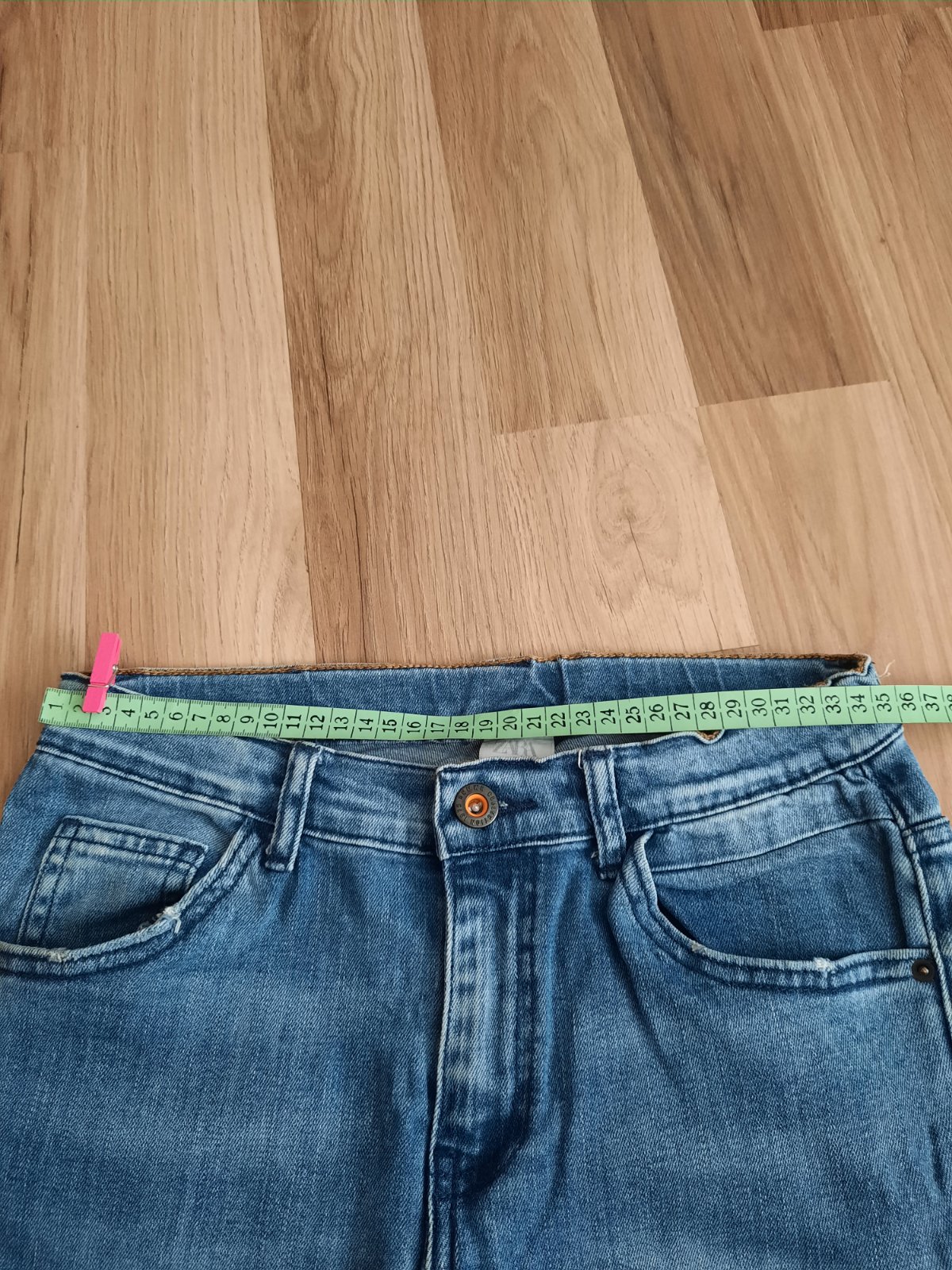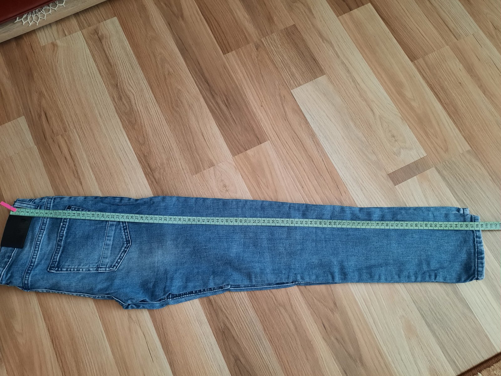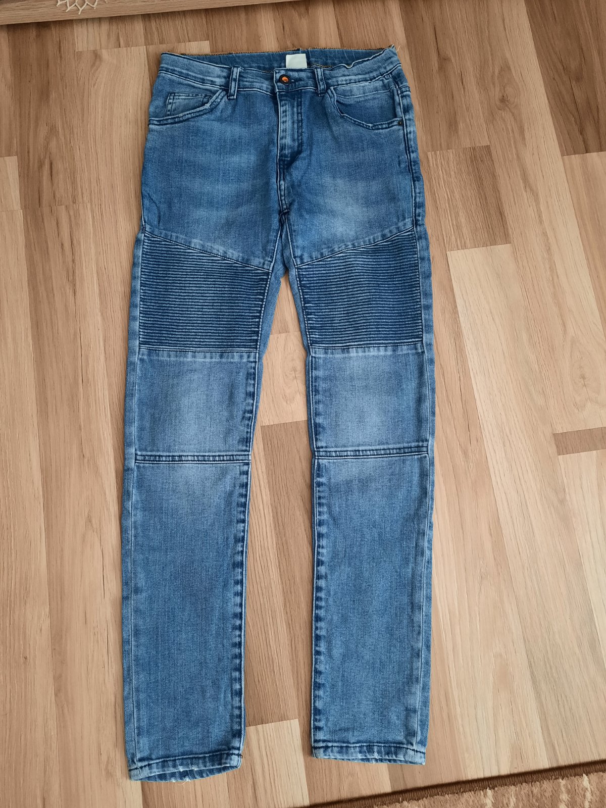 Výborný stav. Vrecká a spodok nohavíc majú od nova vyšúchaný efekt.V pase je regulovateľná guma.