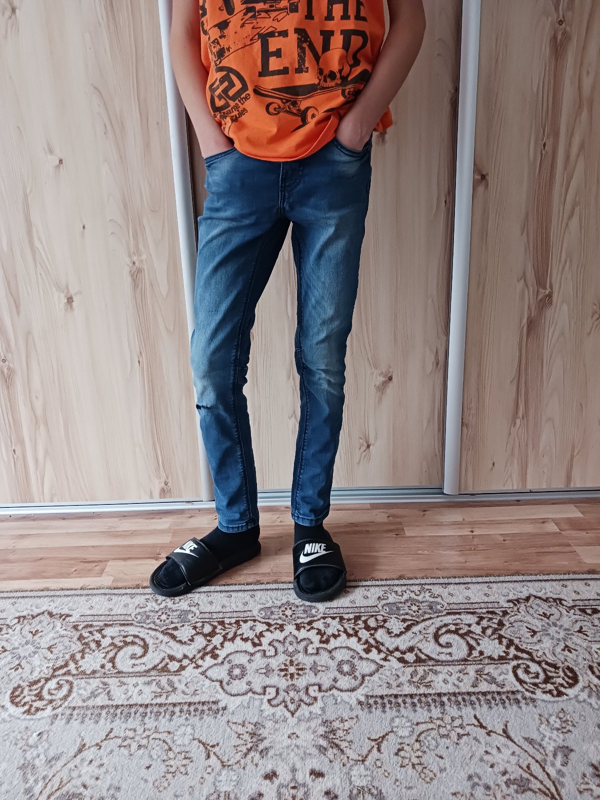 Nosené na striedačku, bez poškodení. Vhodné na štíhleho chlapca.